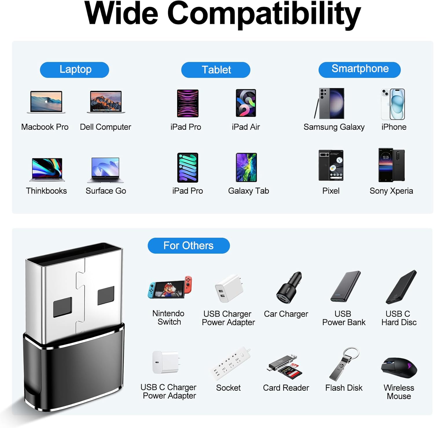 【Reliable Quality】Engineered for enhanced durability, durable aluminum alloy shell material,get excellent wear resistance and heat dissipation,the male USB C and female USB connectors & the male USB and female USB C connectors are designed to be plugged and unplugged up to 20000 times. Provides data transfer, device charging, memory space expansion, and additional computer peripherals.
