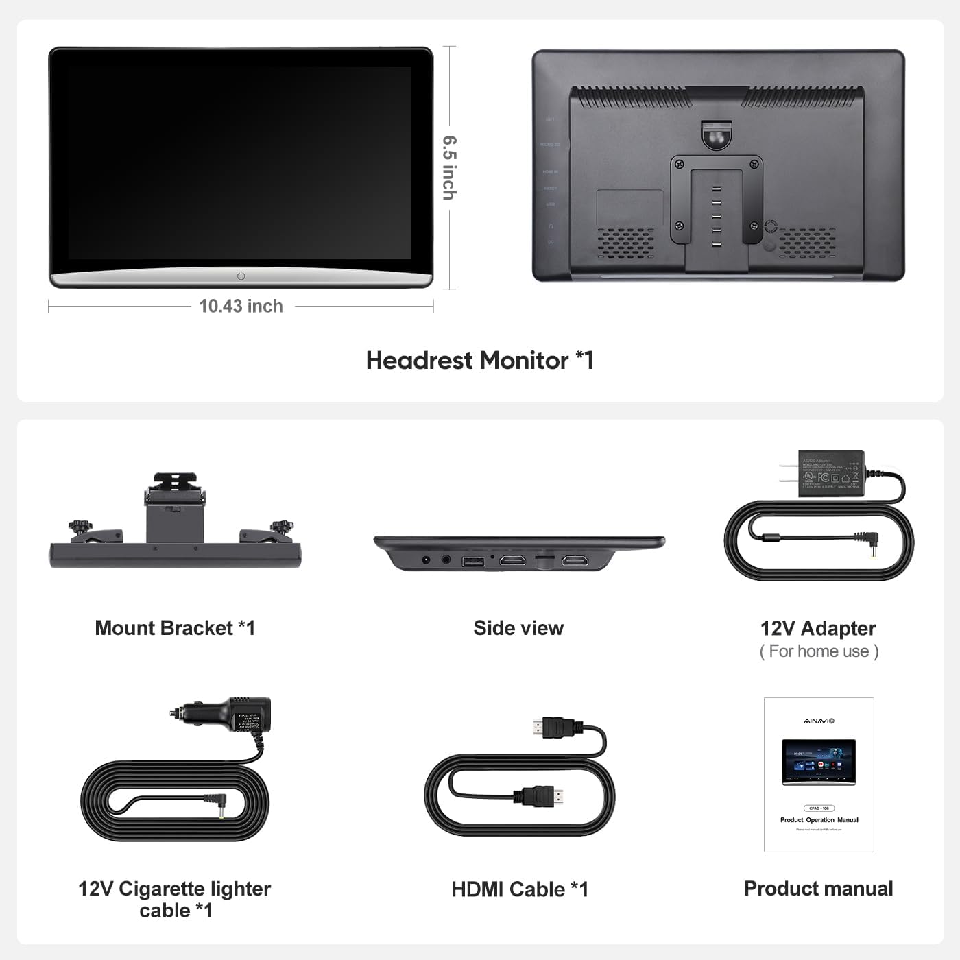 Ainavigo 10.8-inch Car Headrest Monitor with HD Touchscreen and Android 13 Smart System