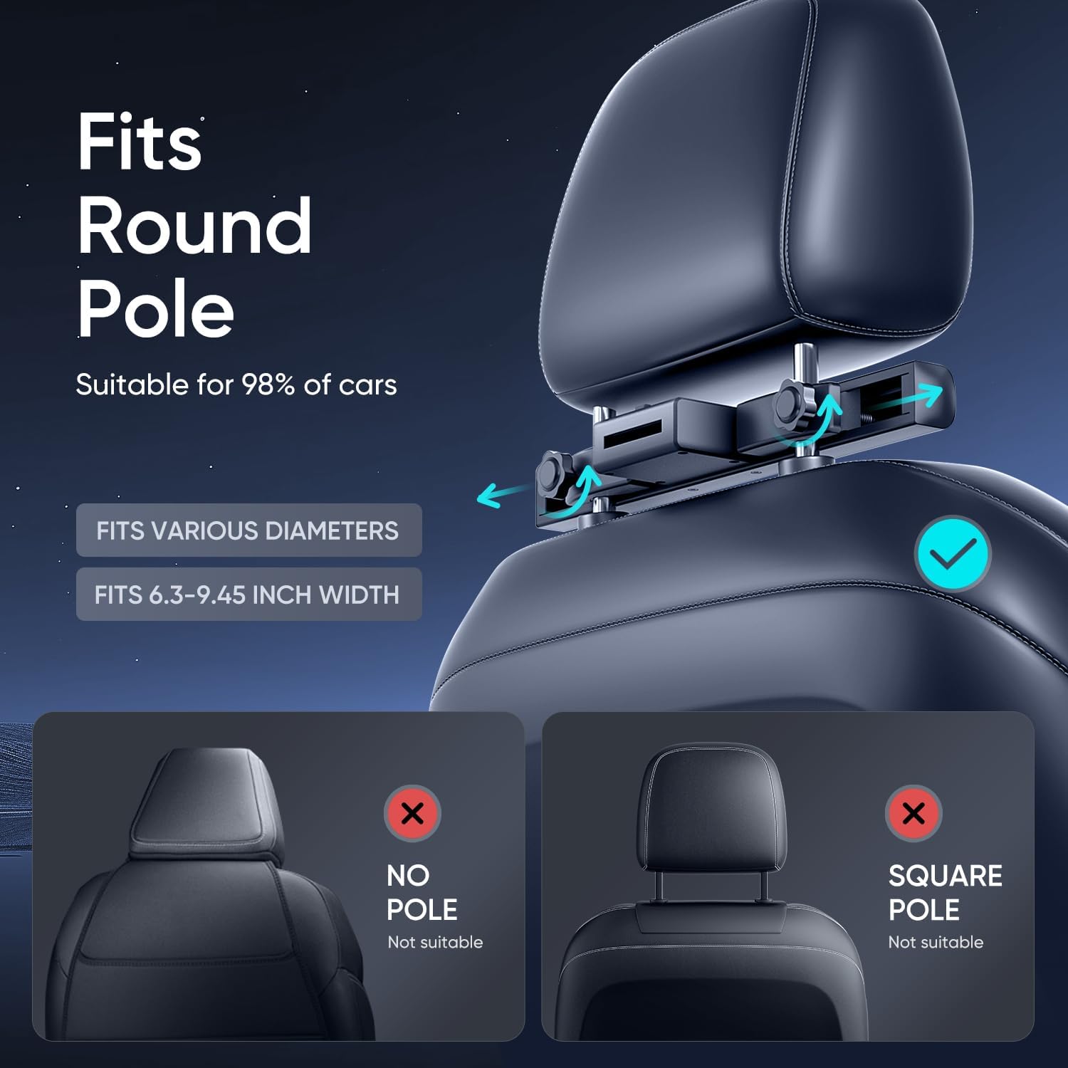Comes with a dedicated bracket, compatible with various vehicle models (suitable for round poles headrests).
