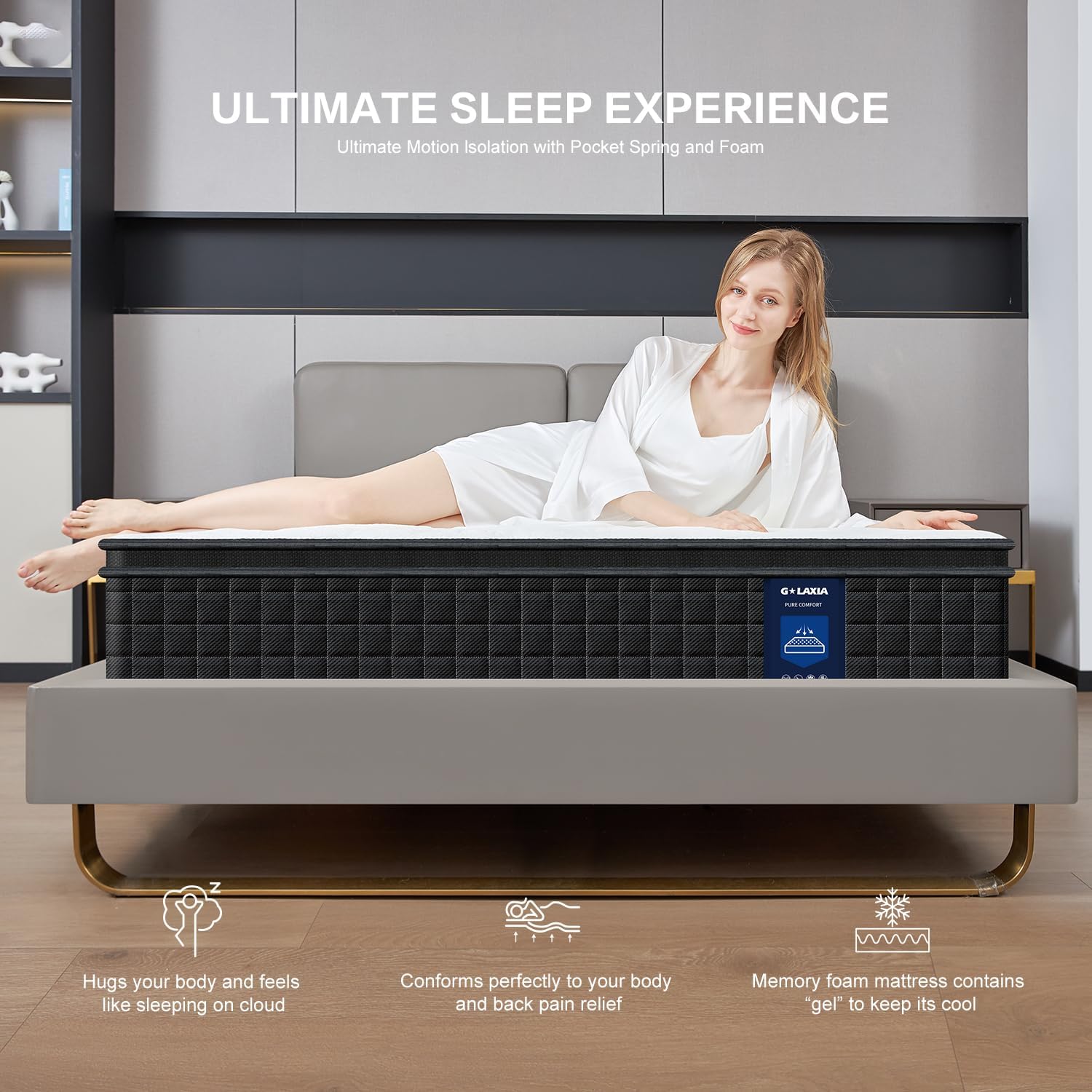 12 Inch Black Queen Spring Mattress,Medium Firm with Gel Memory Foam,Individually Pocketed Coil,Fiberglass-Free Fire Retardant CertiPUR-US Certified,80″*60″*12″