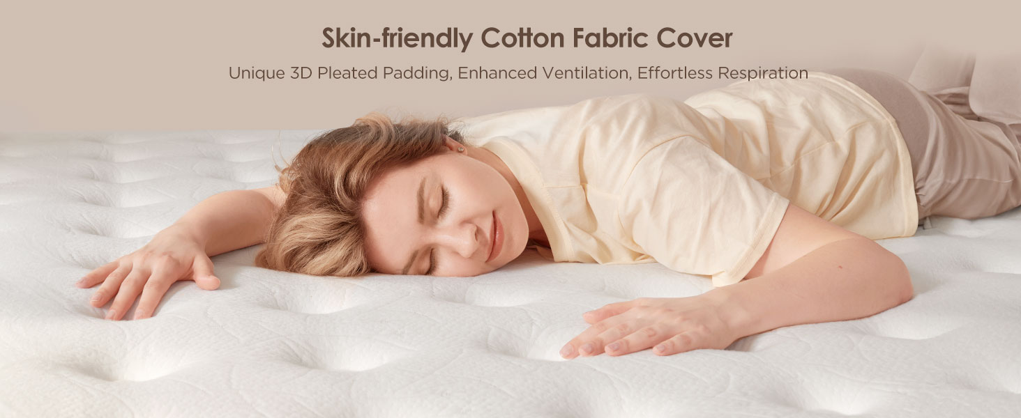 Continuous Cooling & Airflow Comfort: Designed for enhanced coolness and airflow, our queen size hybrid mattress features a soft, skin-friendly cotton-knit cover and breathable foam padding. This combination promotes continuous ventilation, reducing nighttime moisture and stuffiness for a refreshed sleep