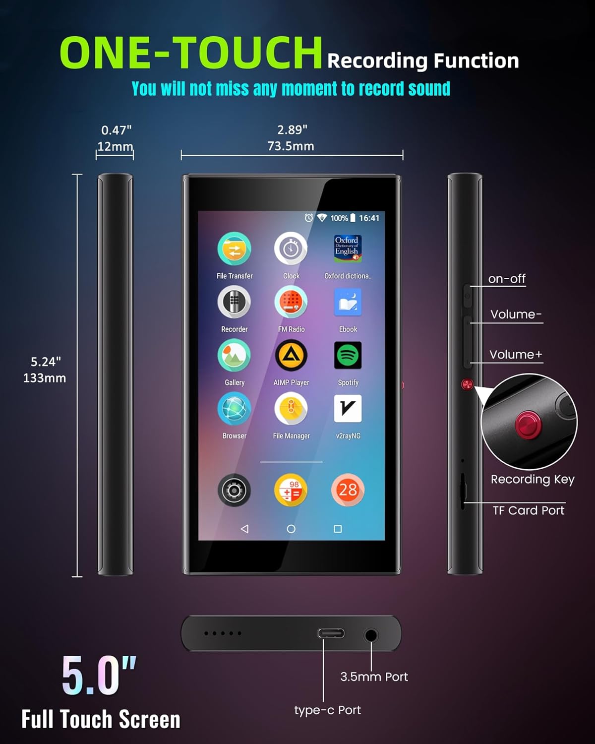 【Powerful Android 14 & Play Store】The Pecsu G5 (New Version) MP3 player features a high-performance octa-core processor that ensures smooth operation on the latest Android 14 system. Comes pre-installed with popular apps like Spotify, Pandora, Spotify Kids, Amazon Music, Libby, and Audible – all updatable and downloadable for free via the Play Store. Customize your experience by easily uninstalling unwanted apps or disabling pre-installed ones to free up memory and maximize storage space.