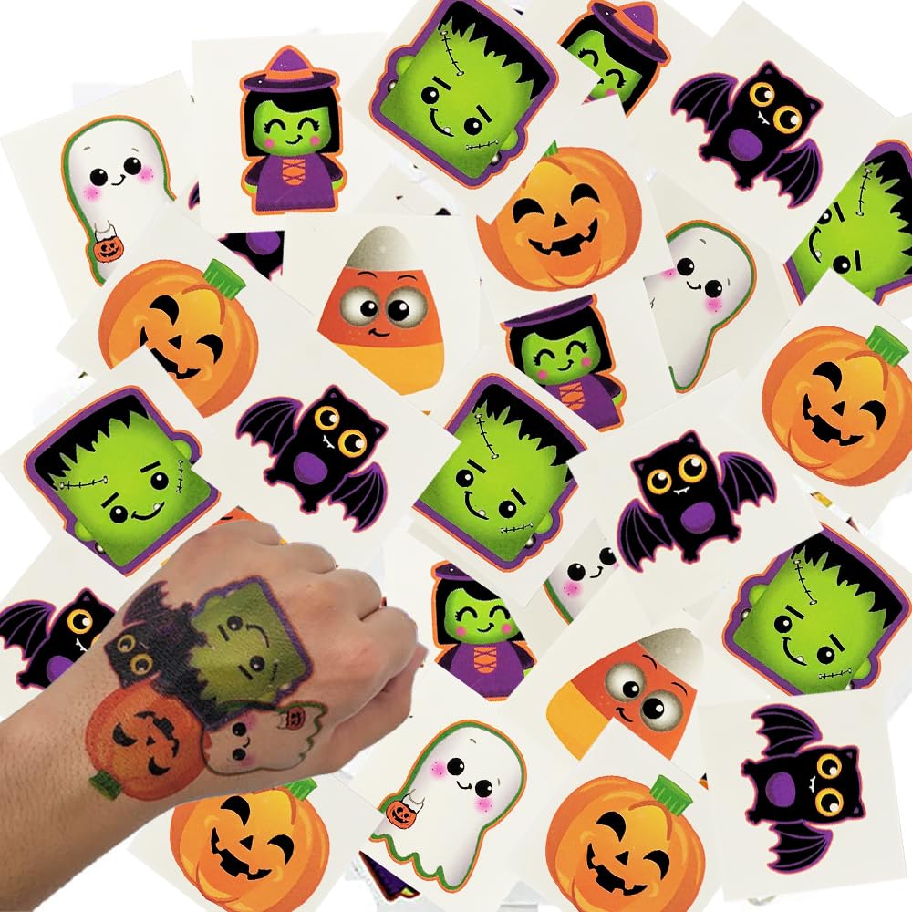 Halloween Temporary Tattoos 2″ Inches – This set of Halloween tattoos for kids features over 144 fun and spooky designs including pumpkins, ghosts, witches, bats, skeletons, spiders, mummies, and more! With kid-friendly and cartoon-style Halloween tattoos, children can safely enjoy decorating their hands, arms, and faces for any spooky celebration. These Halloween temporary tattoos are perfect for adding excitement to trick-or-treating, school parties, or as cute Halloween decorations on goody bags and party favors. Great For Birthday Party Favors, Classrooms, Favor & Goody Bags, And Party Supplies – Designed with kids in mind, these Halloween temporary tattoos use high-quality, non-toxic ink and adhesive that’s gentle on delicate skin. Water activated temporary tattoos. Press firmly on dry skin and wet back of tattoo with damp cloth for 20 seconds. That’s it! Certified safe and easy to use, these Halloween tattoos for kids are a worry-free choice for parents and teachers. Great for classroom giveaways, birthday parties, and all types of Halloween decorations for kids. Peel, apply with water, and enjoy hours of fun without irritation or residue. Includes a variety of Halloween designs and Halloween themes – These Halloween tattoos aren’t just for skin! They make amazing Halloween decorations too—apply them to balloons, pumpkins, cups, treat bags, and notebooks for festive flair. The cute and spooky artwork makes them perfect for DIY crafts and party games. With so many designs, these Halloween tattoos for kids are a fun and creative way to decorate your home, classroom, or Halloween party space. Safe for skin contact on ages 3 years and older