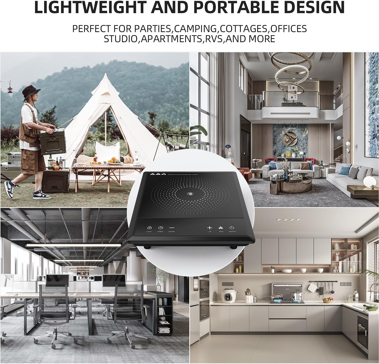 1700W Portable Induction Cooktop,Electric Induction Cooker and Burner,Countertop Hot Plate with 10-Level Adjustment,3-Hour Timer,Smart Touch Cooktop,and Safety Lock Feature,Black