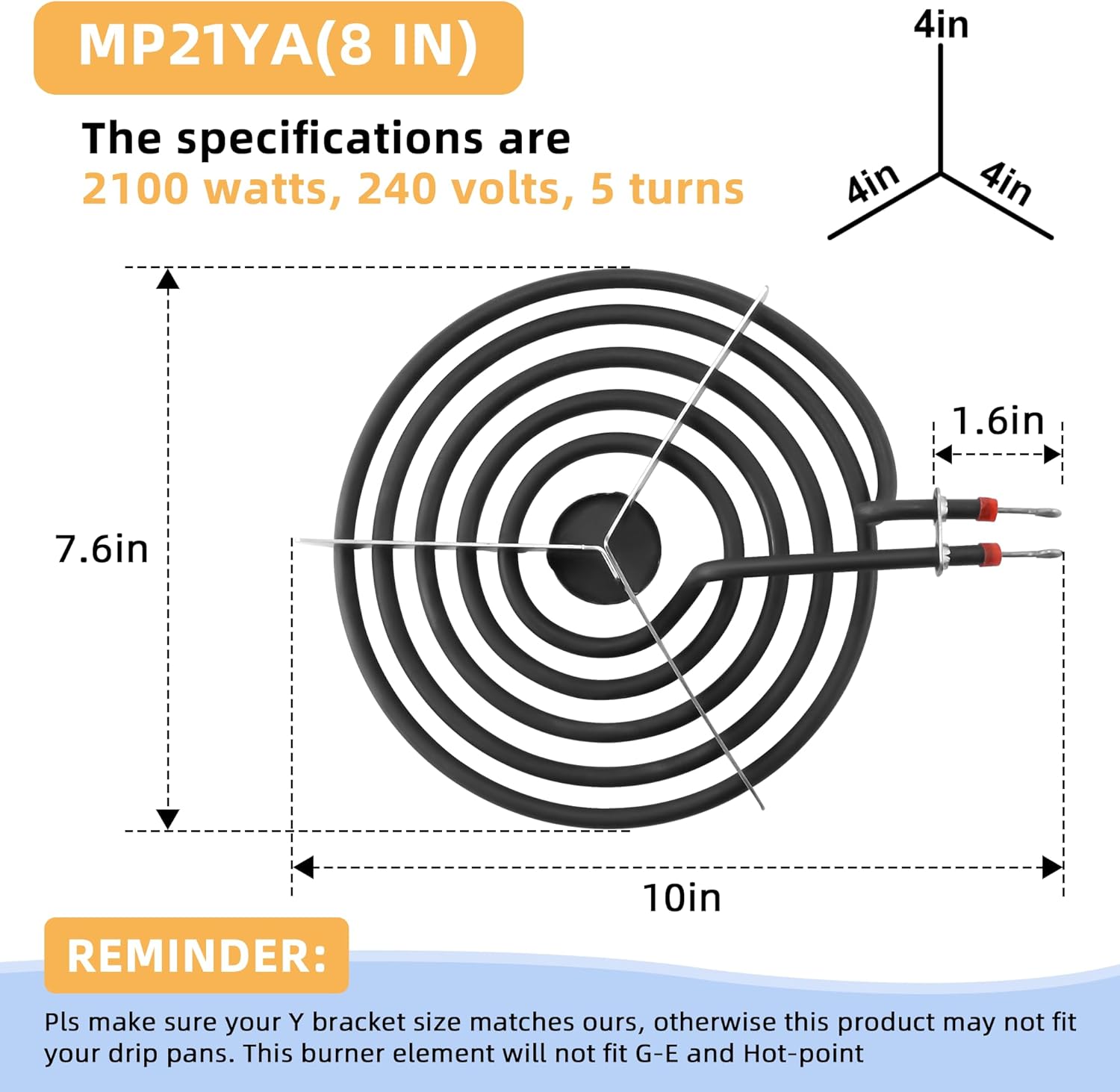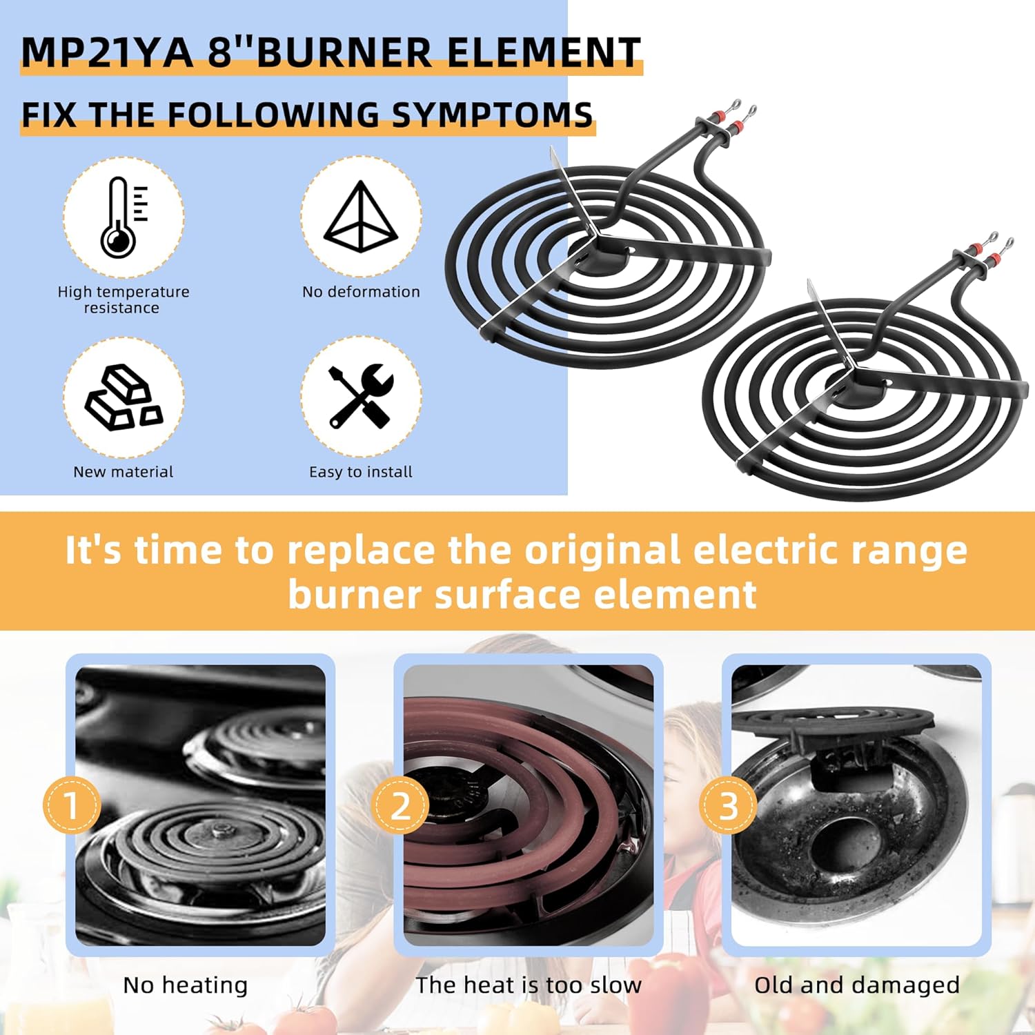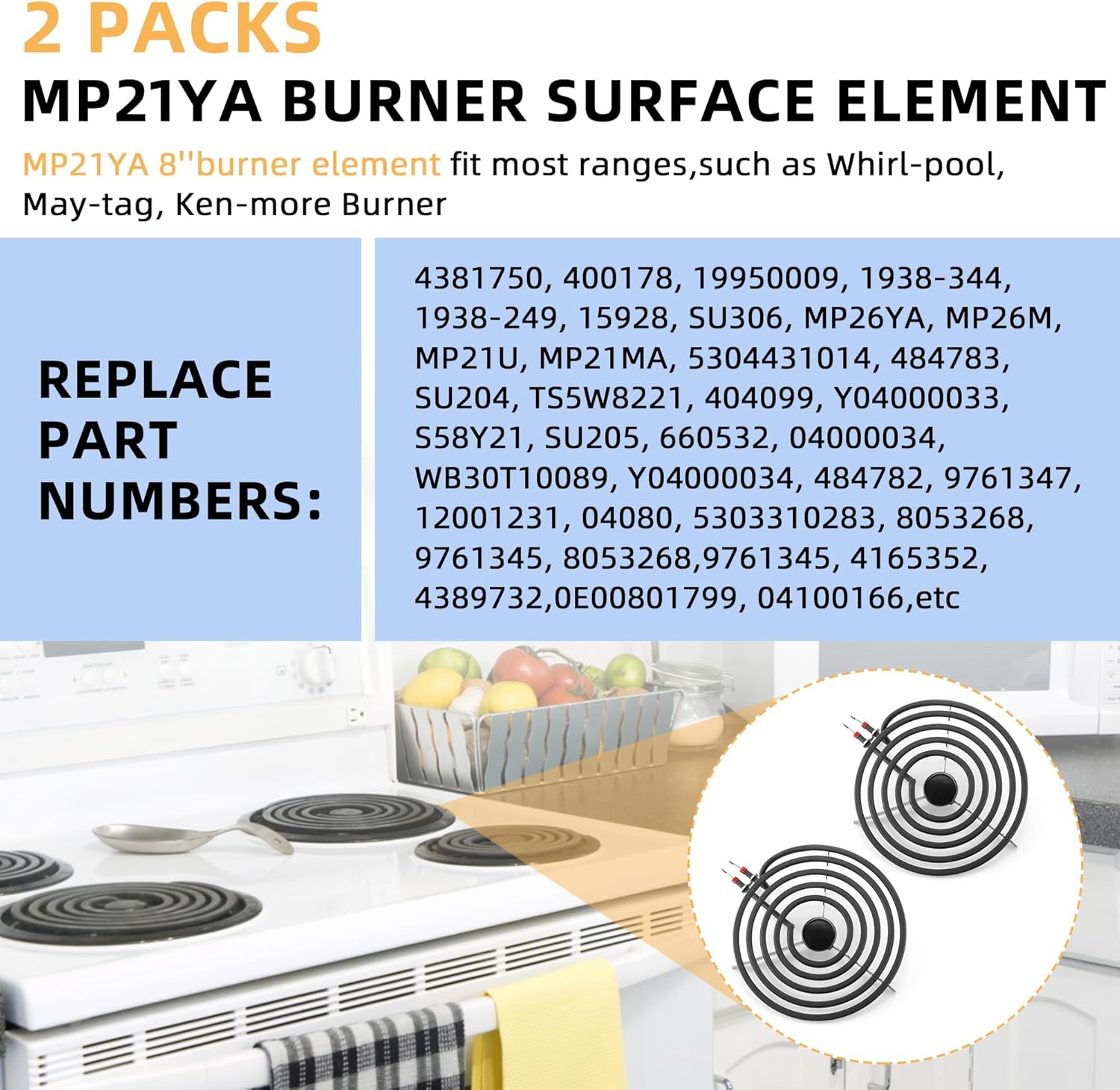 2 Pack MP21YA Electric Range Burner Element Unit 8″ Replacement Fit for Hard-wick & Ken-more & May-tag & Nor-ge & Whirl-pool Electric Range Stove – Fit MP22YA Stove Burner by AMI PARTS