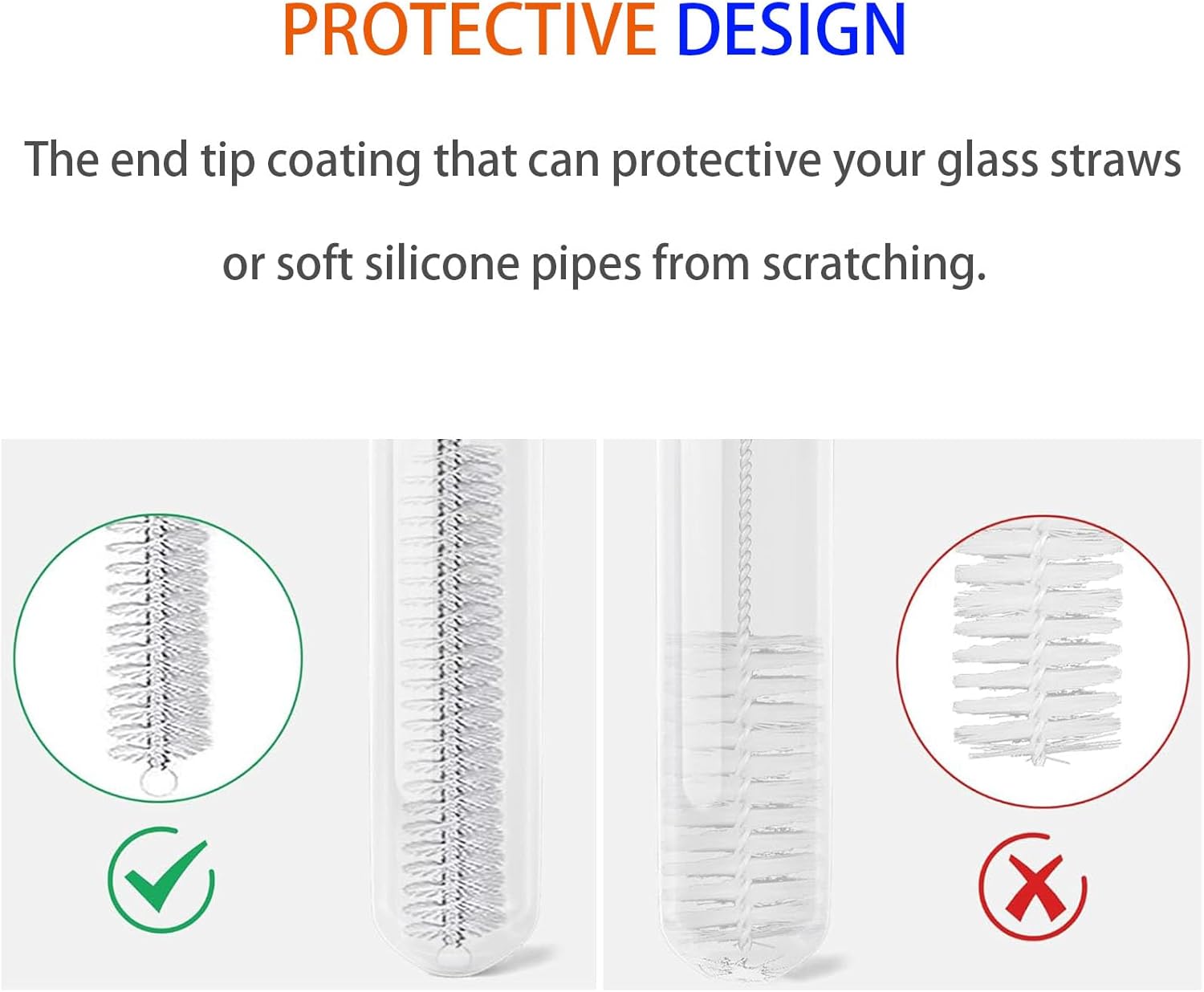 2 Pack Straw Cleaner Brush, Reusable Metal Handles Straw Cleaner Brush Extra Long for Stanley Mug 40, 30, 20 oz, 10mm Wide Straw Cleaner Brush for Sippy Cup, Water Bottle and Tubes (Clear+Clear)