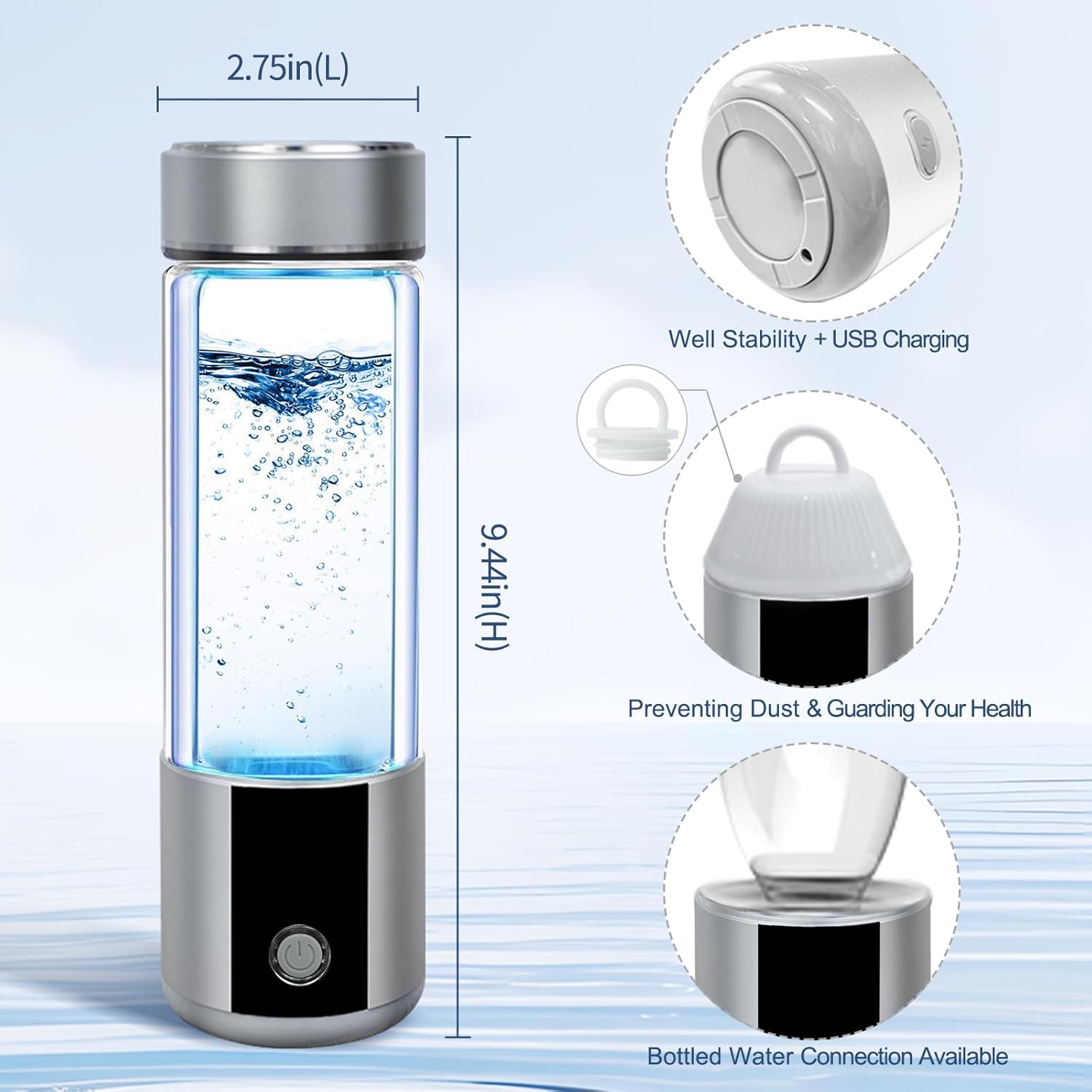 Hydrogenated water bottle comes with 2 new dust covers to prevent dust from entering. It is safer, and can be connected to bottled water, lighter and more convenient to carry when going out, traveling, hiking, fitness, picnics, etc.