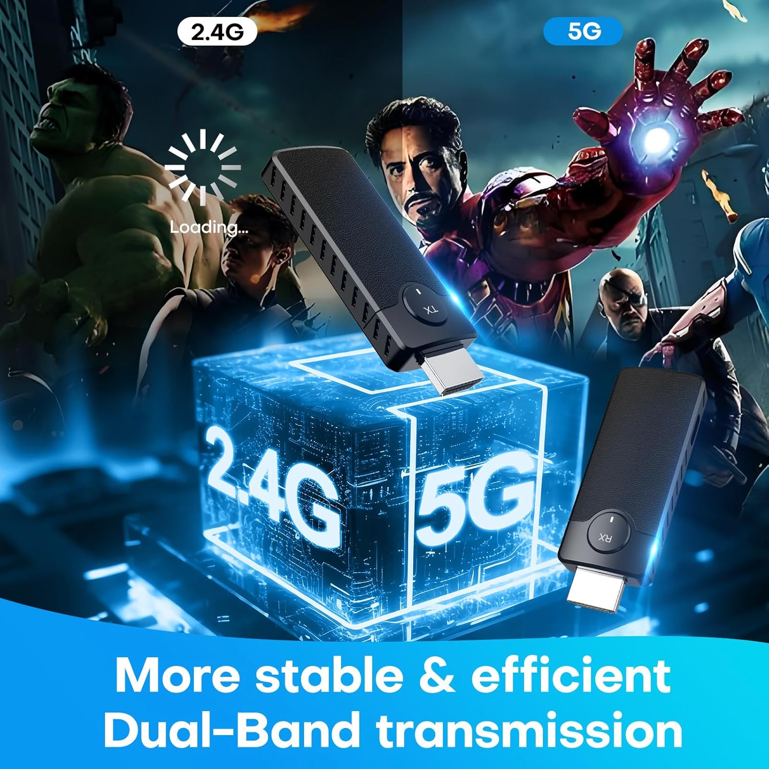 2025 Upgraded Wireless HDMI Transmitter and Receiver,Plug and Play Wireless HDMI Adapter,4K Decode 1080P@60Hz Ultra HD Video Output for Video/Audio from Laptop/Camera/TV Box to Monitor/HDTV/Projector