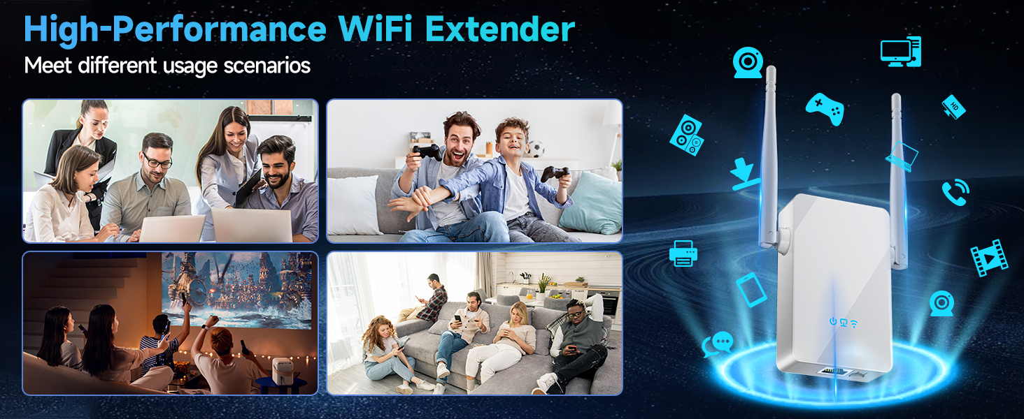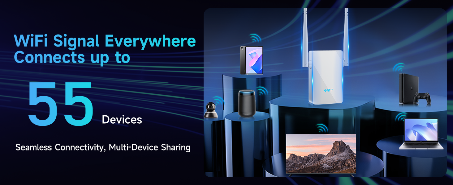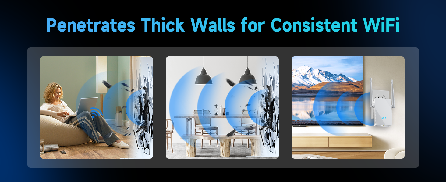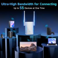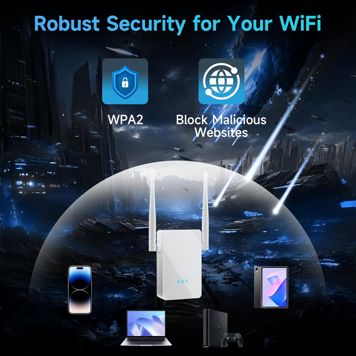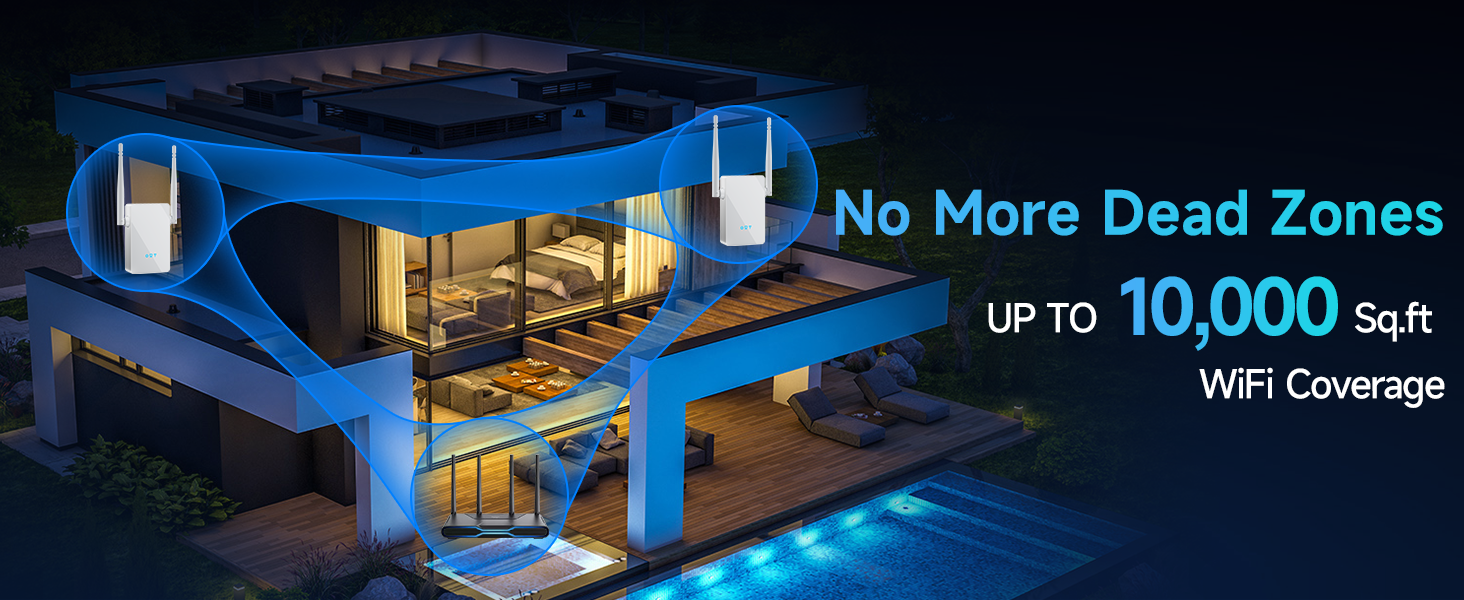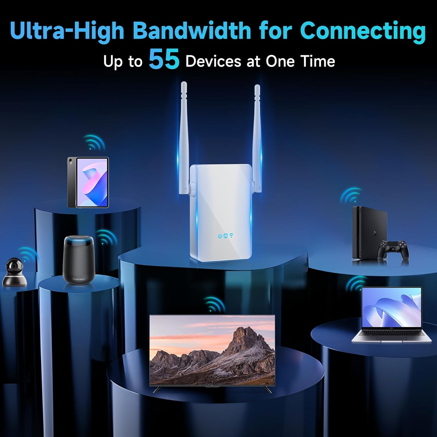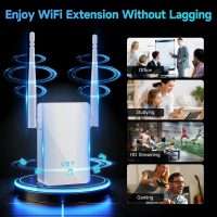 No More Wi-Fi Dead Zones: The WiFi range extender with an advanced central processing unit and powerful new-generation chips can better extend wireless signals up to 10,000 sq.ft. The Wi-Fi range booster penetrates walls, and floors, and extends your internet wireless network to every corner of your house, ideal for online gaming, video chat, and even streaming 4K HD video