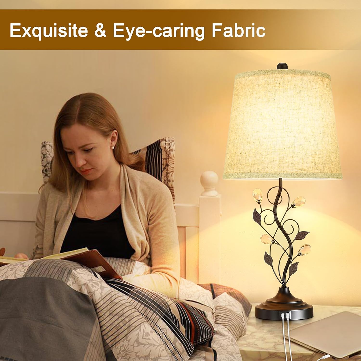 Quality-assured Lamp Set: These bedside lamps for nightstand are built to last, featuring an upgraded metal structure and exquisite K9 crystal finish that resists rust and corrosion. The weighted base ensures exceptional stability, preventing tipping or wobbling. The choice fabric shade emits a soft and even light, creating a soothing ambiance while protecting your eyes