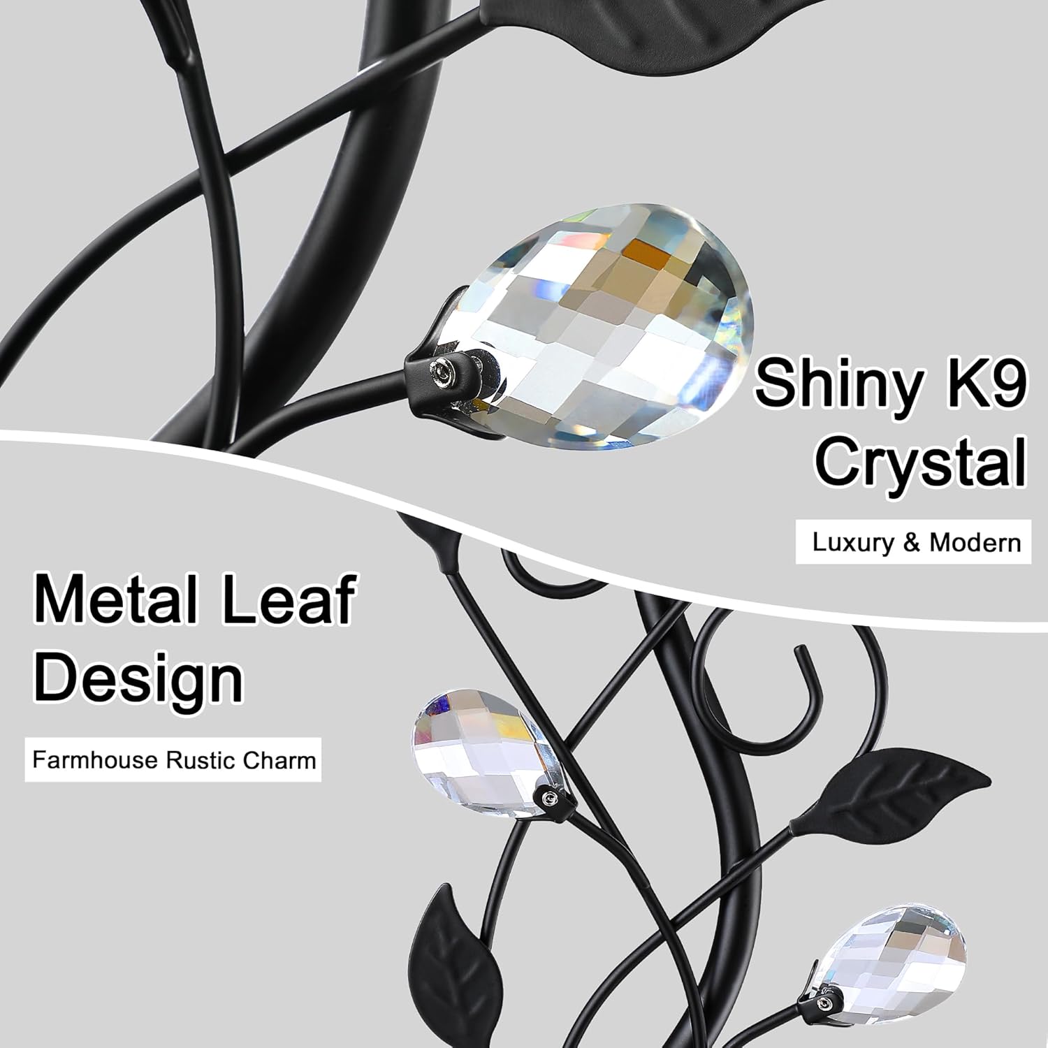 Unique Leaf & Crystal Design: These living room table lamps showcase a distinctive metal leafy design, adding an organic and earthy touch to your decor. The K9 crystal petals infuse a sense of elegance and luxury. The classic black lamp body with fabric shade in cream complements modern farmhouse aesthetics, making them a timeless choice for various decoration schemes, including traditional, vintage, contemporary, and rustic styles