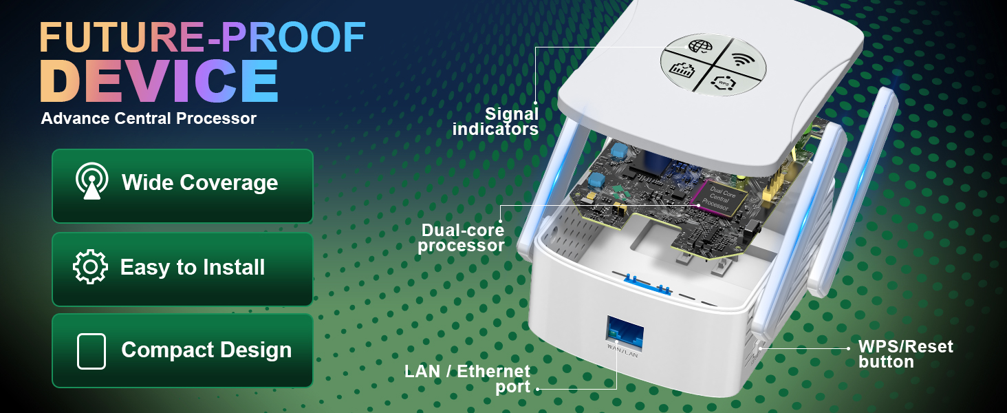DUAL GIGABIT ETHERNET PORTS: Hardwire gaming PCs/Office workstations via 2x 1000Mbps ports (0 lag) while boosting wireless signals. Hybrid mode serves wired and wireless Outdoor speakers through one device