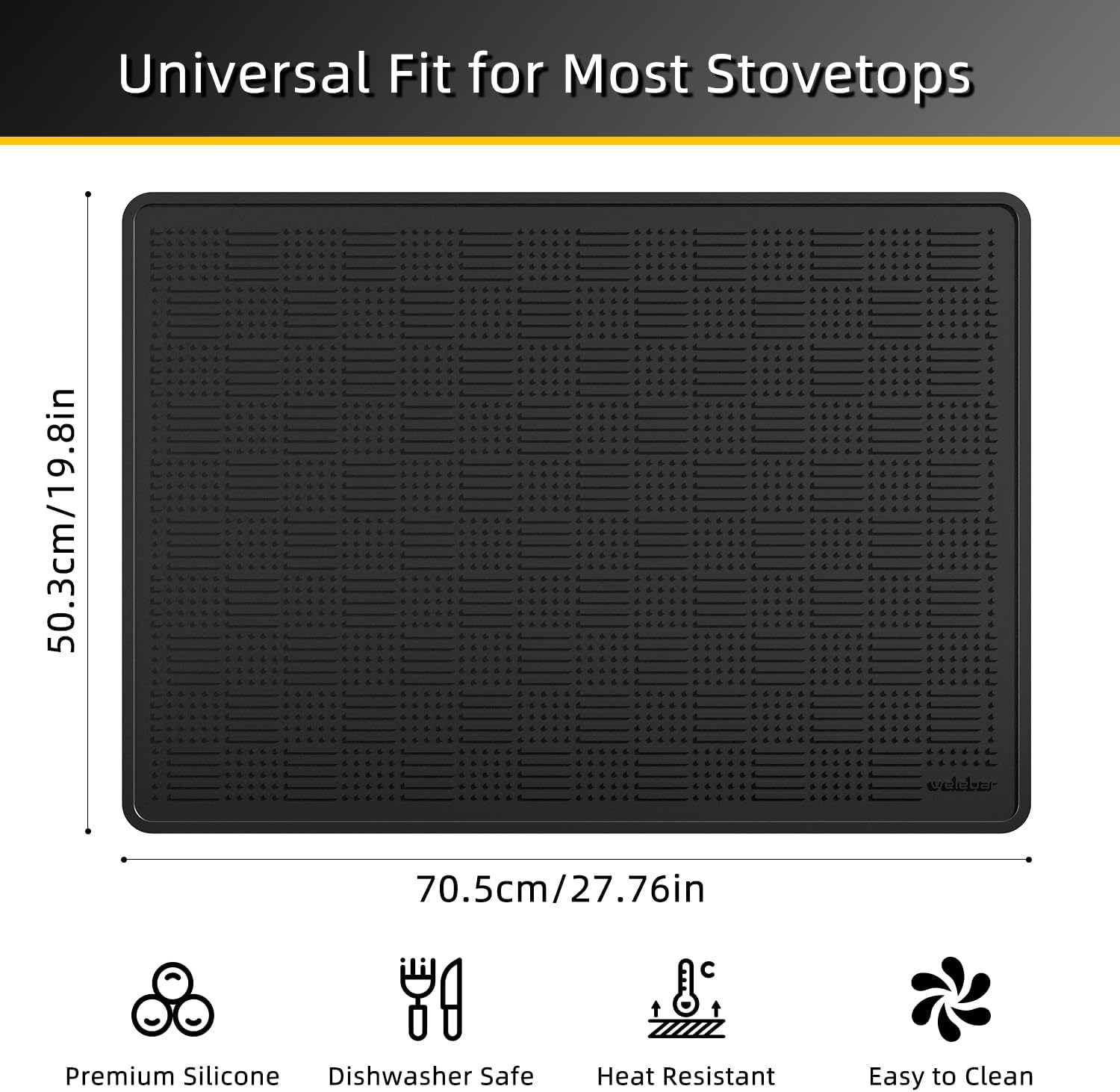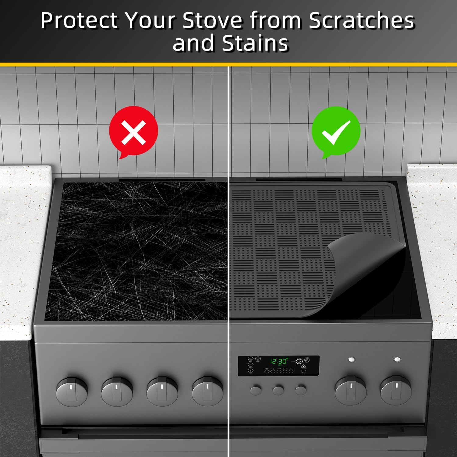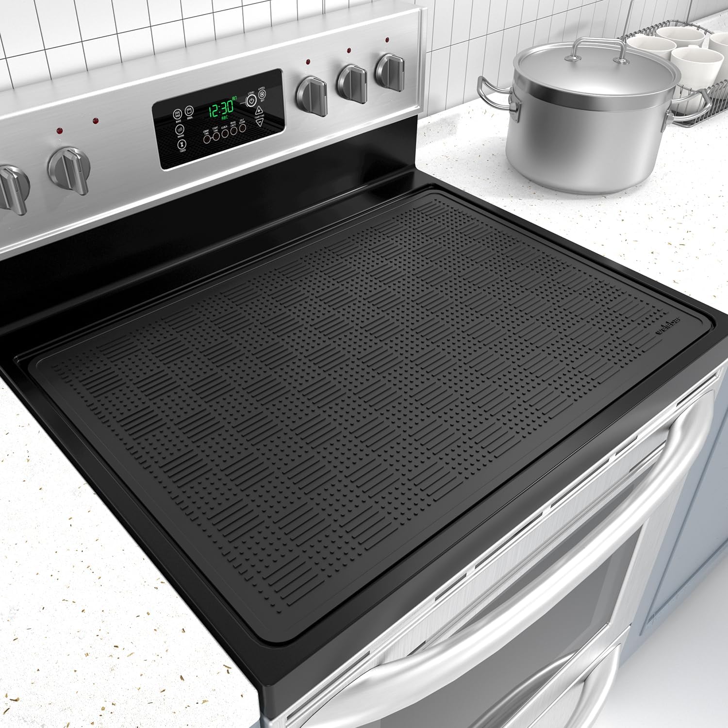 28×20 Inch Stove Top Cover for Electric & Glass Top Stoves, Heat-Resistant Thick Silicone Stove Mat, Multi-Use Dish Drying Countertop Protector (Black)