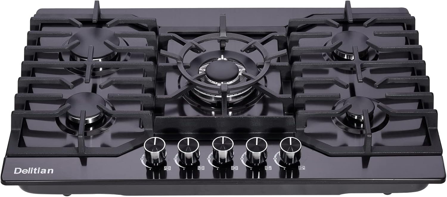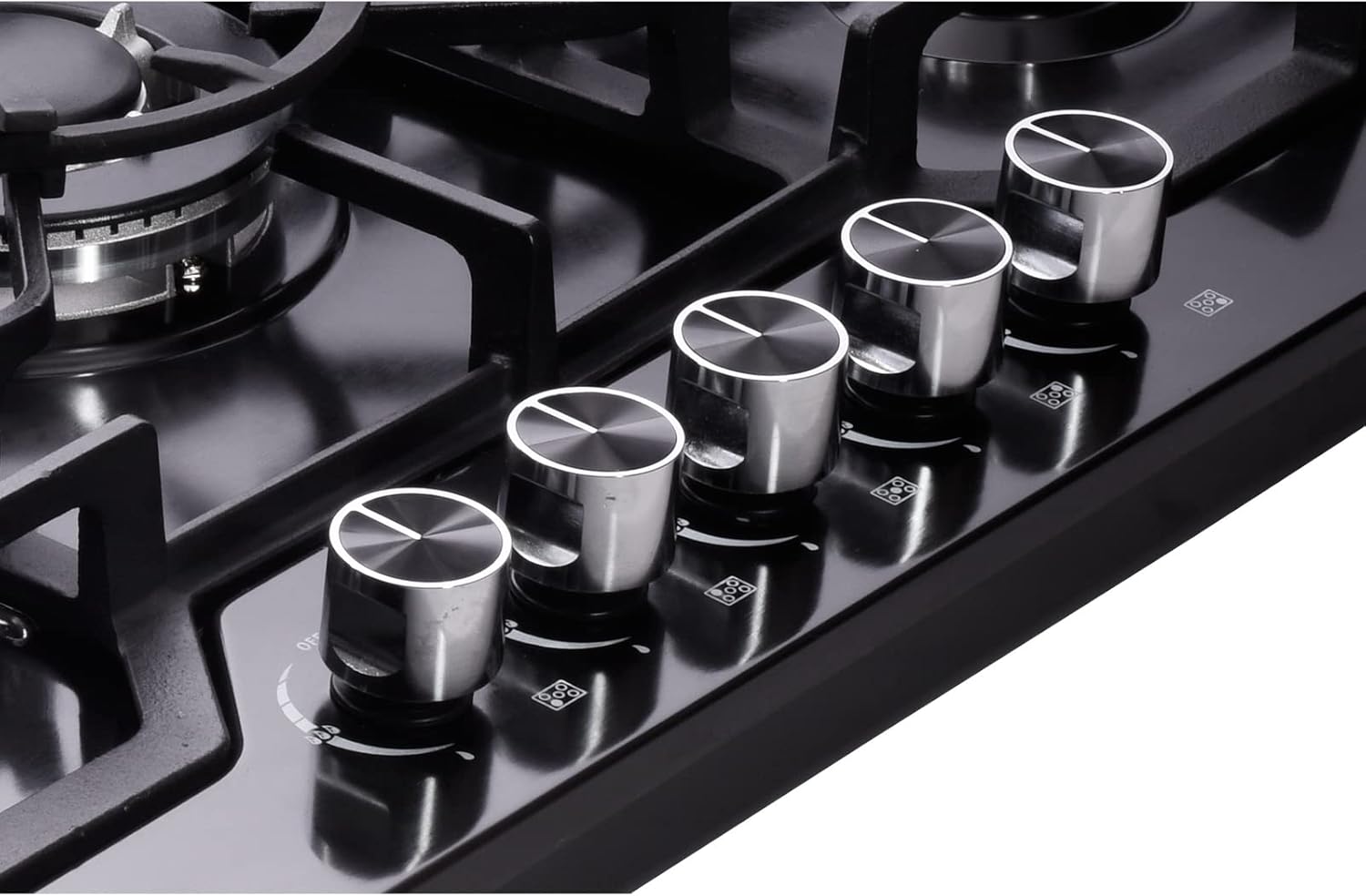 [HIGH POWER BURNERS]- Note: This gas cooktop offers 3-year guarantee.This gas cooktop features 5 high-powered sealed burners1*11262BTU+ 1*9385BTU +2*5972BTU +1*3413BTU ) in order to provide efficient and clean-burning flames.