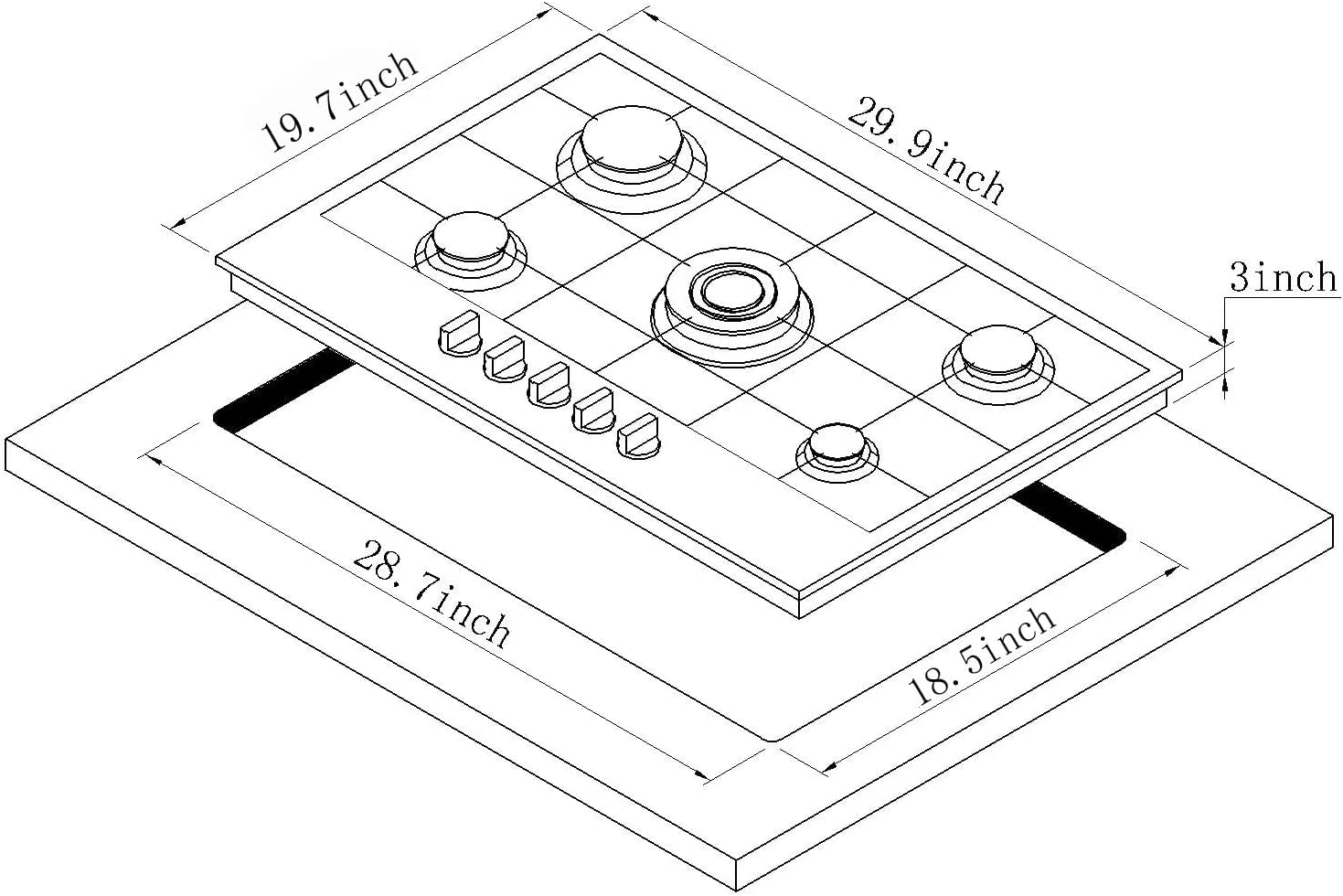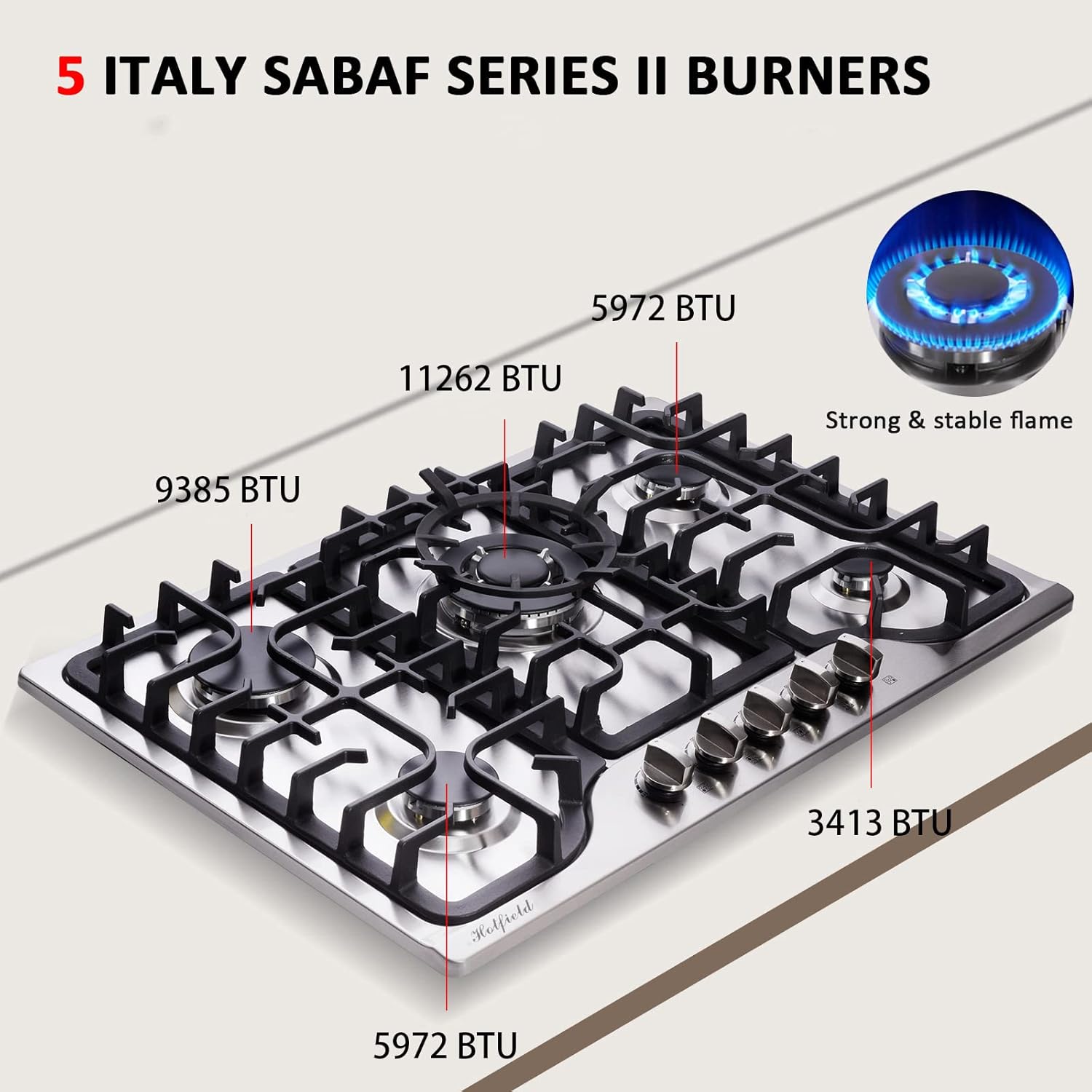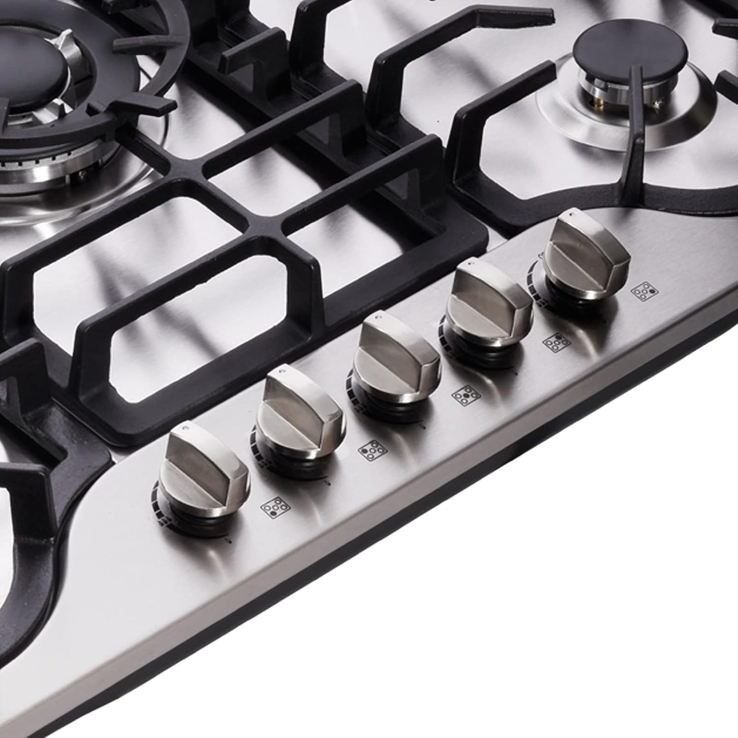 30 Inch Gas Cooktop Stainless Steel 5 Burners Stovetop Dual Fuel Gas Hob NG/LPG Convertible Gas Cooktop HF57042 Stainless Steel