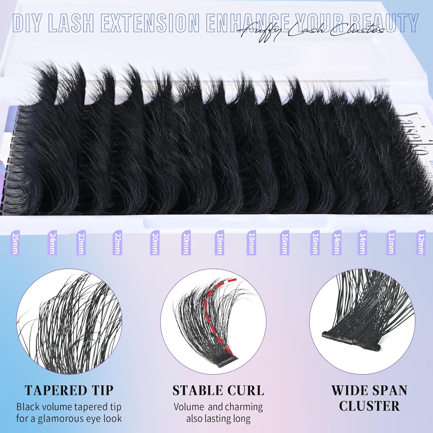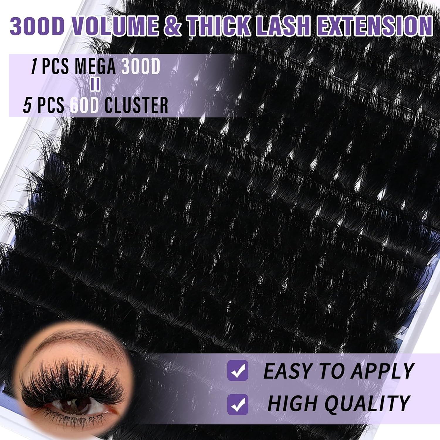 300D Lash Clusters Extensions Mega Cluster Eyelash Lashes 224 Pcs Thick Volume D Curl Wispy Individual Lashes DIY Lash Extension 12-25MM False Eyelashes Makeup at Home Replacement for Yaiseiko