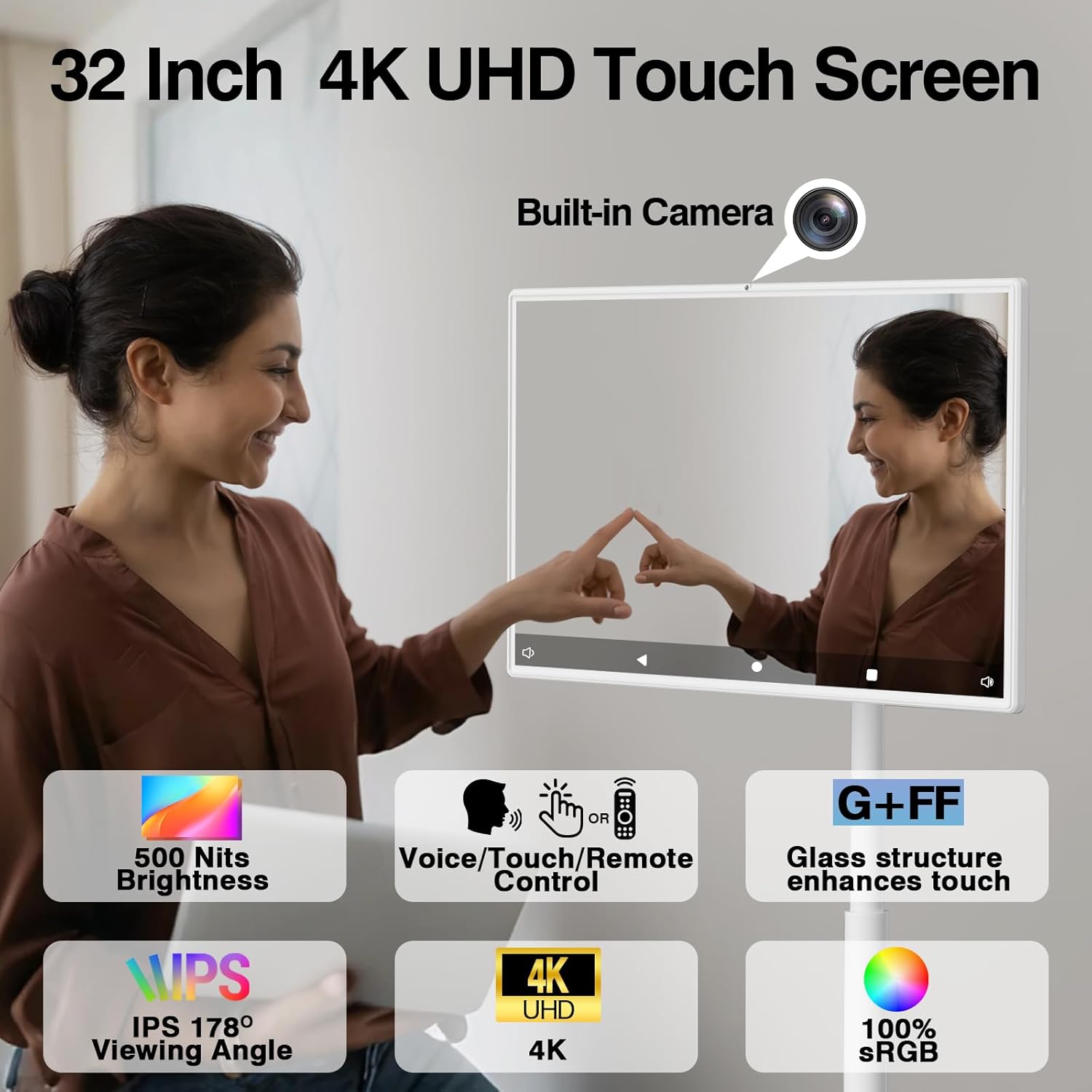 32 inch Portable FHD Touch Screen TV Monitor: The portable smart TV features a crisp 1920×1080 Full HD touch screen with built-in dual speakers, perfect for streaming, browsing, and video calls. With a built-in HD camera and remote, . Whether you’re relaxing or working, this smart portable tv fits seamlessly into your lifestyle.