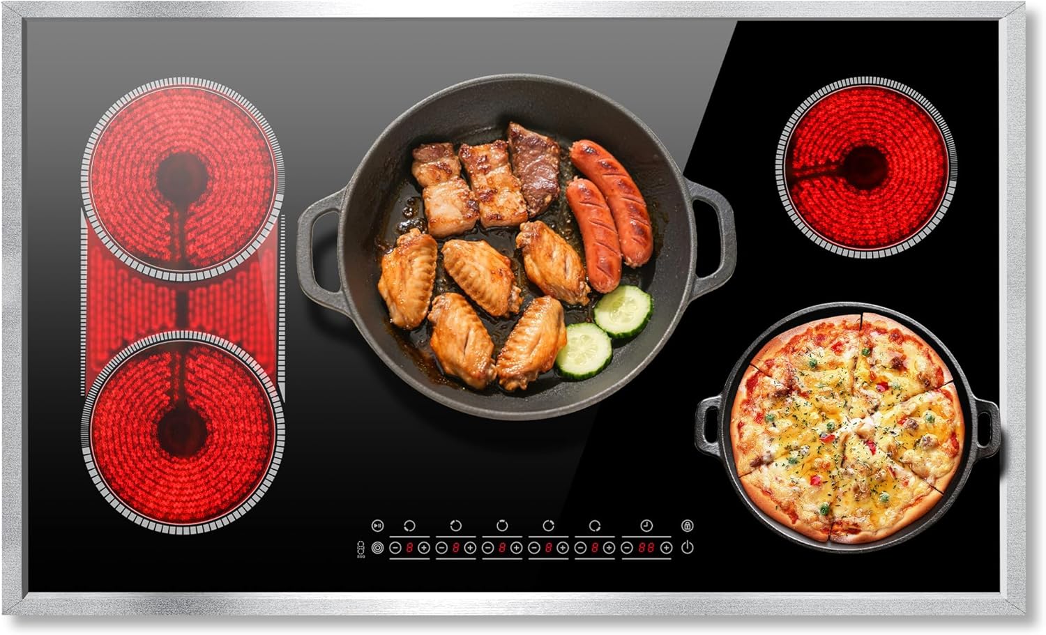 【Smart Touch Control & Flexible Zone】Enjoy precise touch control adjustments with responsive fingertip operation. The flexible zone transforms this electric cooktop 36 inch into a customizable cooking space, accommodating oversized cookware with flexible heating areas.
