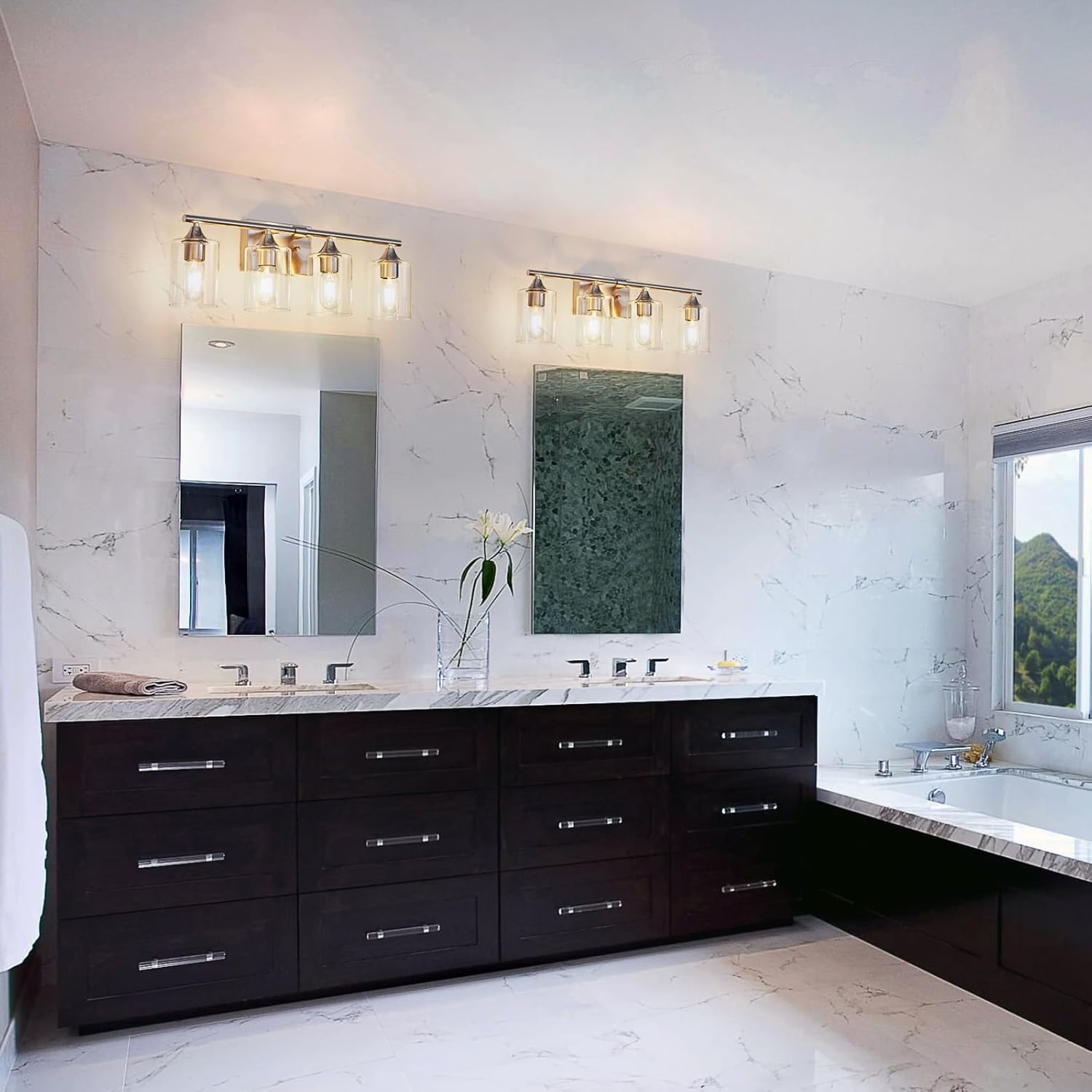 【Upgrade Brushed Nickel Vanity Light】 Modern bathroom vanity light fixture features a smooth Brushed nickel finish, thickened high transparency glass lampshade to maximize its light, rugged metal pole and rust and corrosion resistant coating to ensure long-term safety and durability, providing a bold and stylish solution for your bathroom or powder room lighting needs!