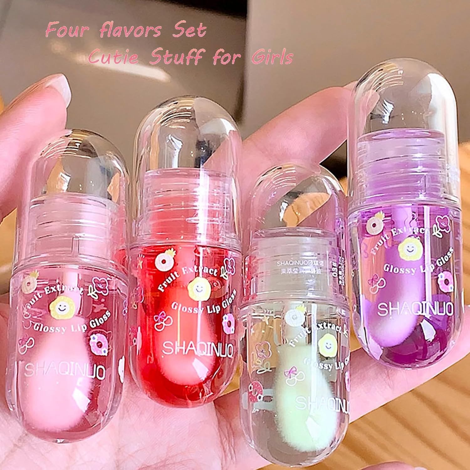 4 Pcs Lip Gloss Oil Set, Fruit Flavored Lip Gloss Set Cute Lip Jelly Hydrating Lip Make-Up for Women, Party Gift, Non-toxic