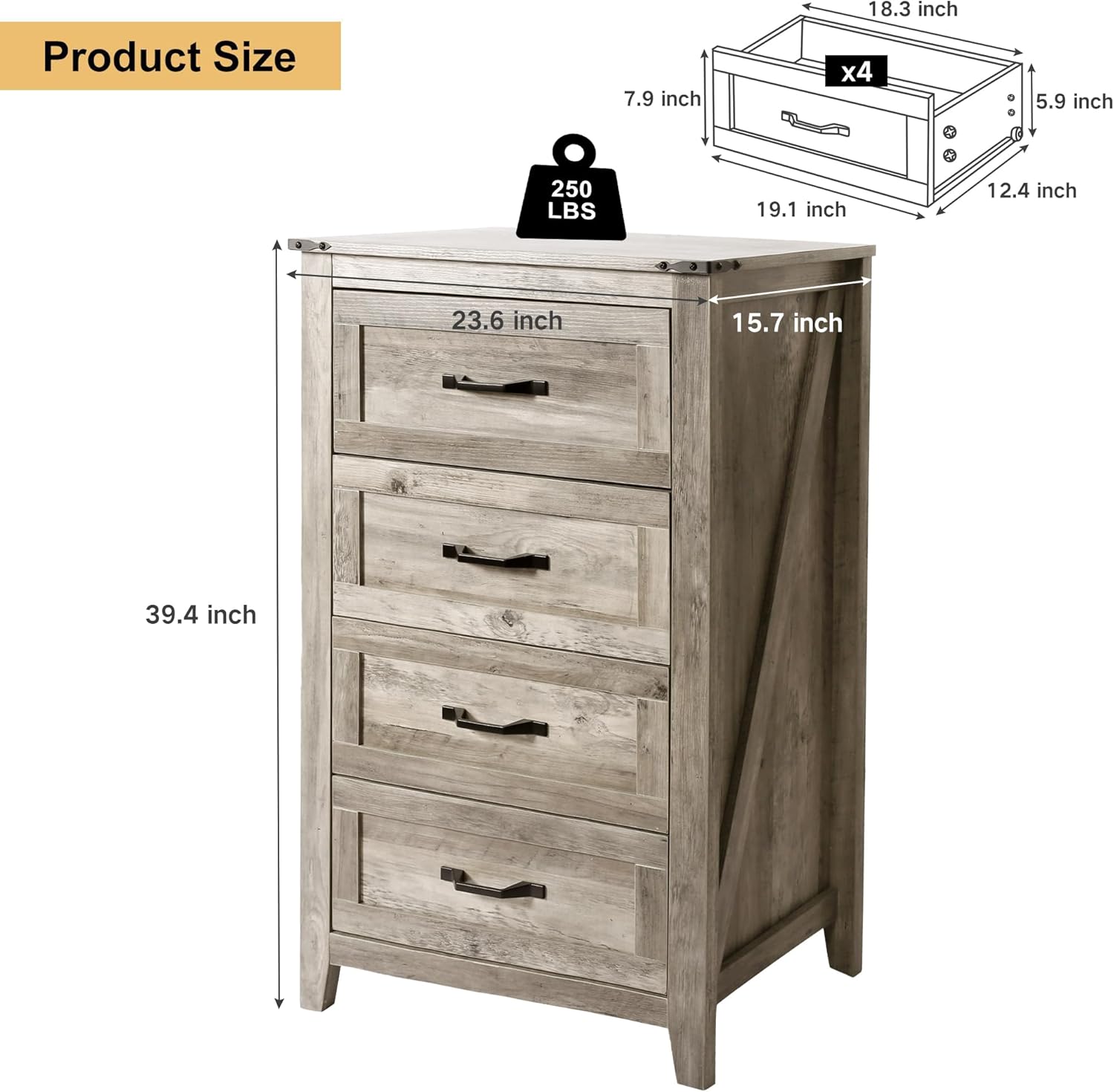 𝟒 𝐏𝐈𝐄𝐂𝐄𝐒 𝐒𝐄𝐓 – This 4-piece wooden bedroom furniture set contains: one 6 -drawer dresser, one 4-drawer chest and 2-drawer nightstand set of 2 to meet your storage needs for different functions and spaces. Bring a unified farmhouse style to your room!
