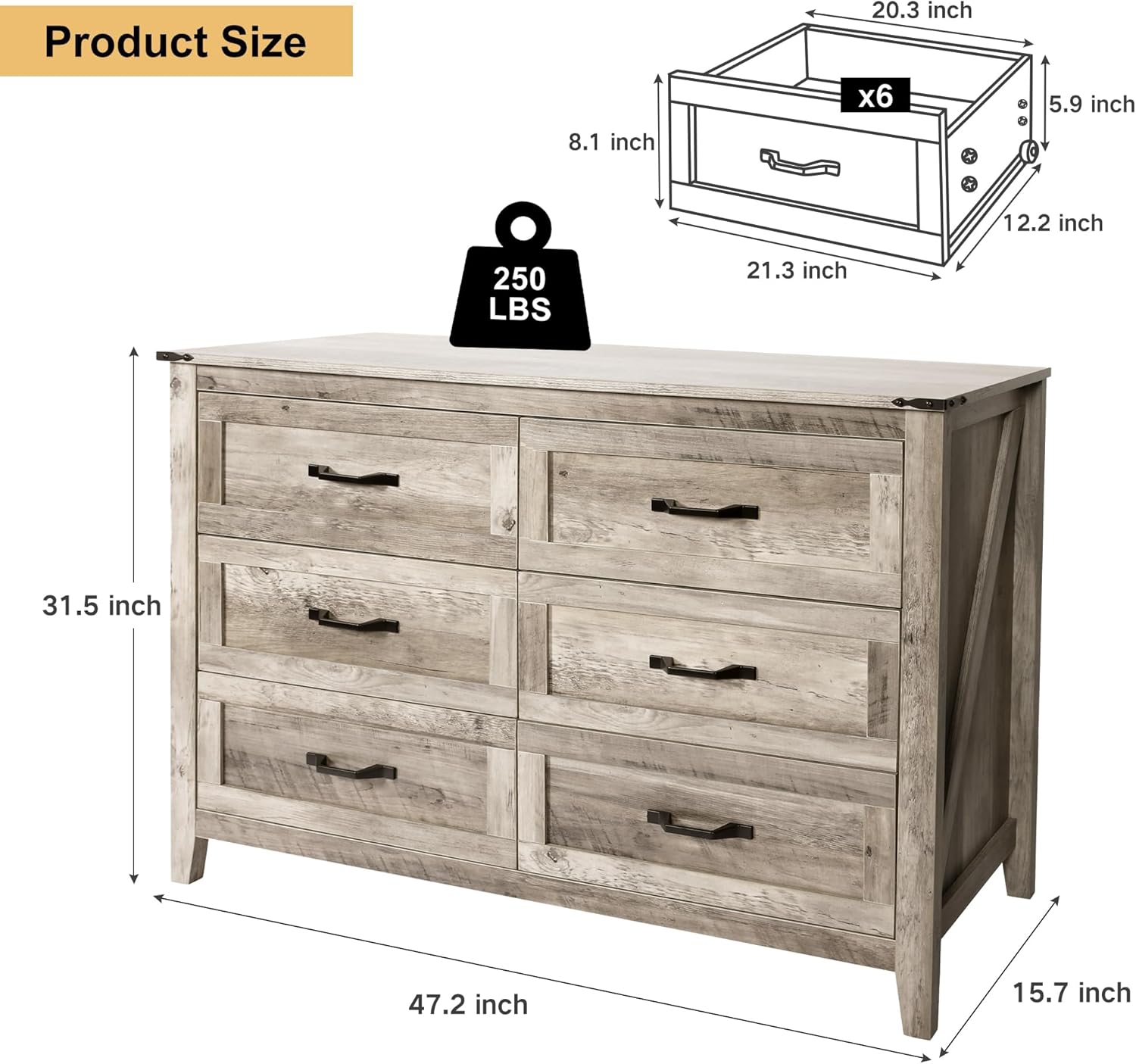 𝐅𝐔𝐍𝐂𝐓𝐈𝐎𝐍𝐀𝐋 𝐒𝐓𝐎𝐑𝐀𝐆𝐄 𝐃𝐑𝐄𝐒𝐒𝐄𝐑𝐒 – The rustic 6-drawer & 4-drawer chest are the perfect storage solution for your home. Both dressers feature wide and deep drawers, providing plenty of space to hold all your belongings. From clothes and toys to skincare products and towels, you’ll be able to keep everything organized and easily accessible.