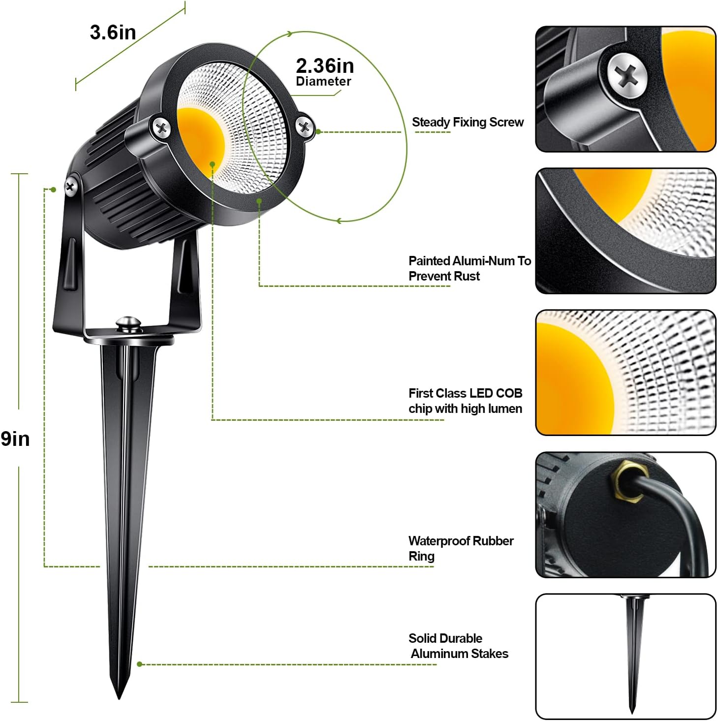 【Quality in priority】This landscape light is made with IP65 standard, which is resistant to any kind of terrible weather. But also please noticed that it could not be soaked in water. To futher enhance the durability,we use thick die-casting aluminum to protect the spike to against corrosion and rust. In summary:we put quality in the first priority.