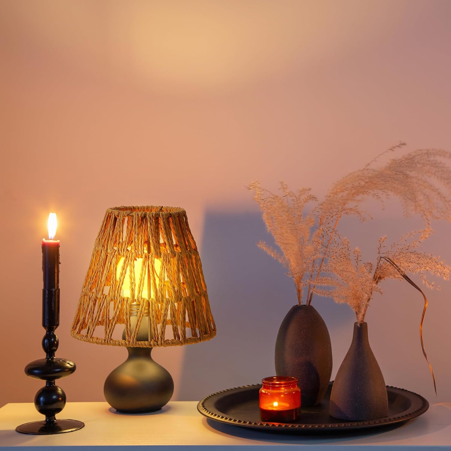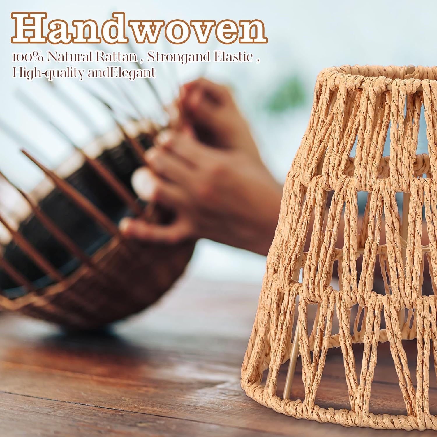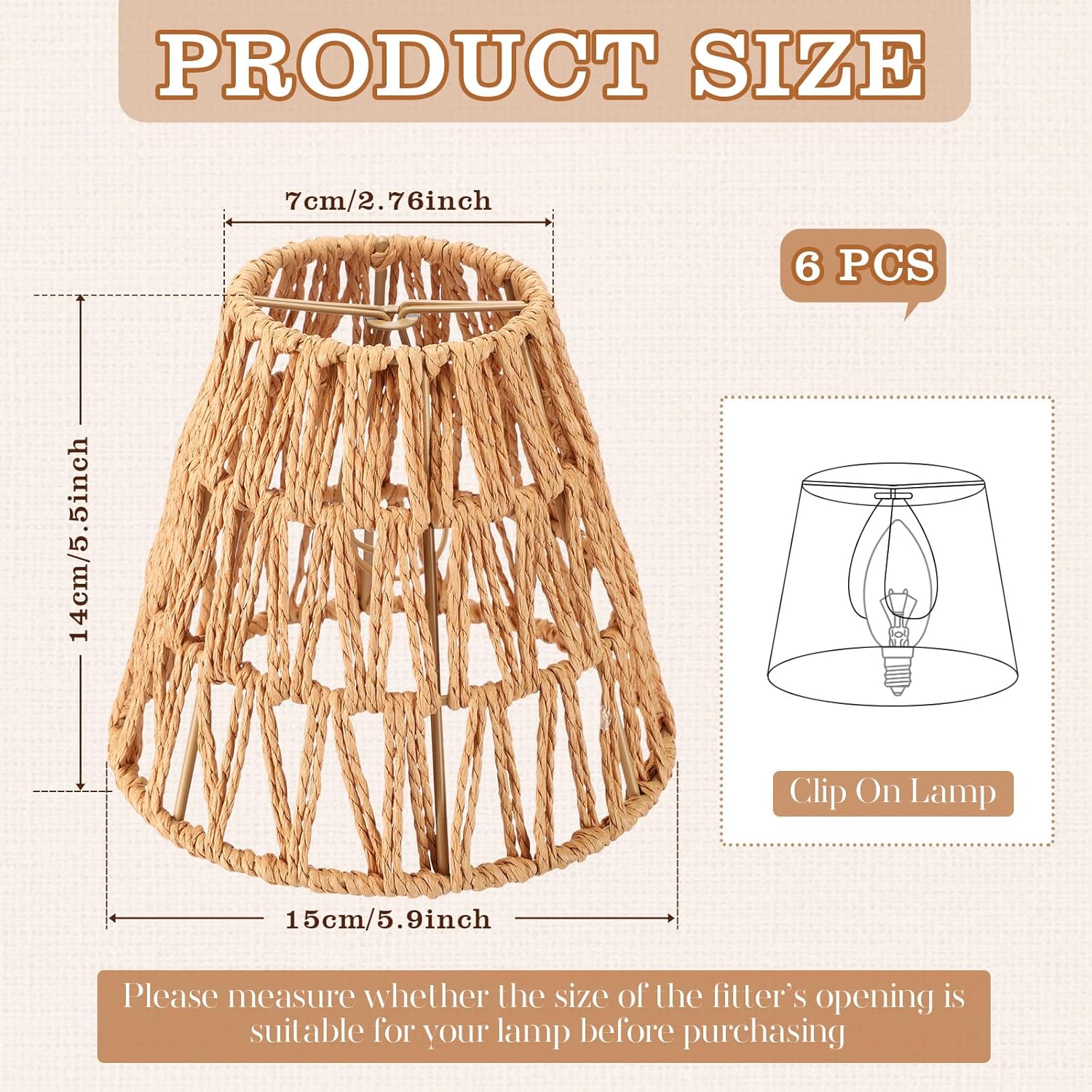Ideally Sized for Most Lamps: the rattan chandelier shade, measuring 5.5 inches in height and 5.9 inches in diameter with a 2.76 inch fitter, adds a beautiful addition to most lamp styles; Note: this is a clip on bulb small lampshade; Before buying, please ensure the small lamp shade replacement opening top fitter is the right size for your light fixtures; You can refer to the measurement chart or contact us to confirm