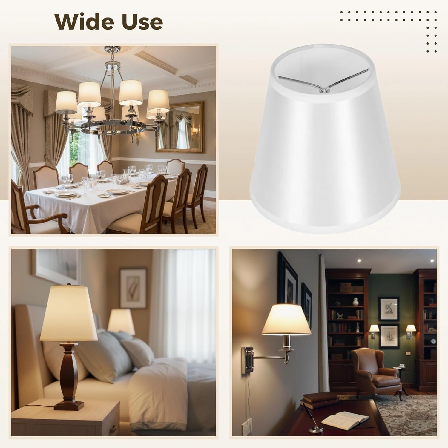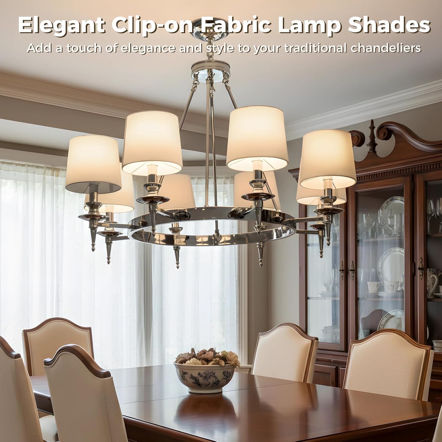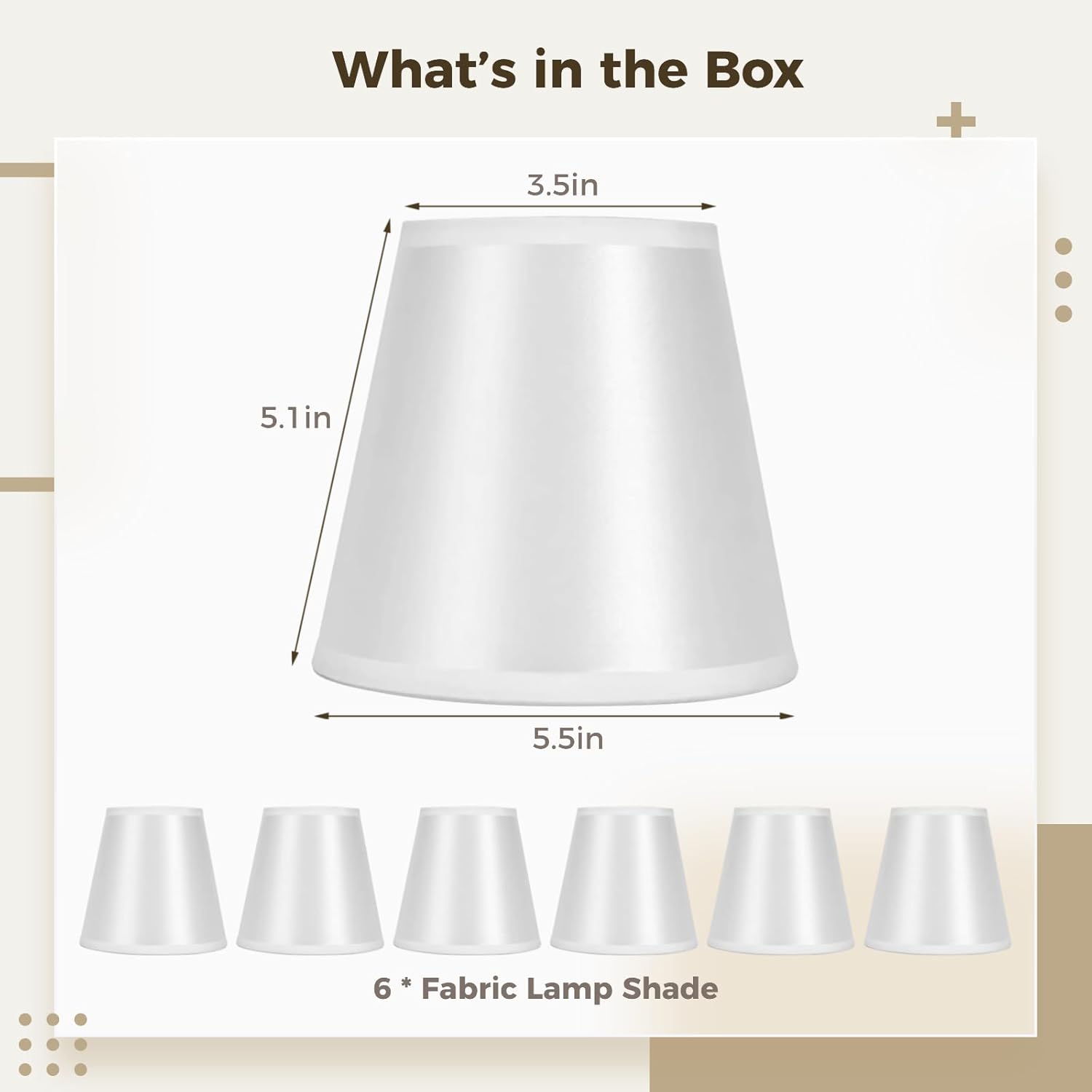 Elevate Home Lighting Ambiance: Upgrade your lighting with this set of 6 clip-on chandelier fabric shades, sized about 3.5 x 5.5 x 5.1 inches; refresh old fixtures with a clean, elegant look that brings soft style to your space