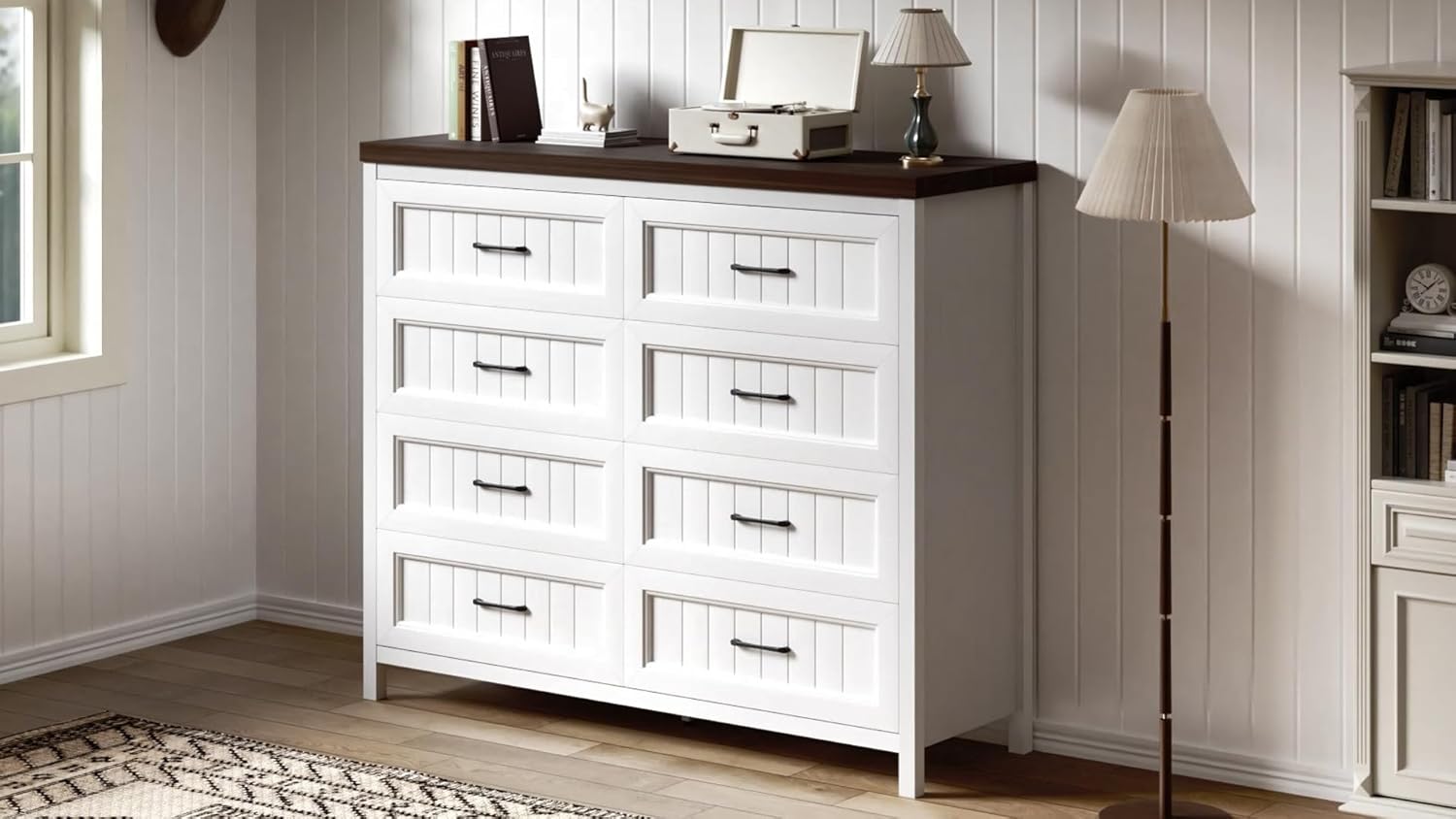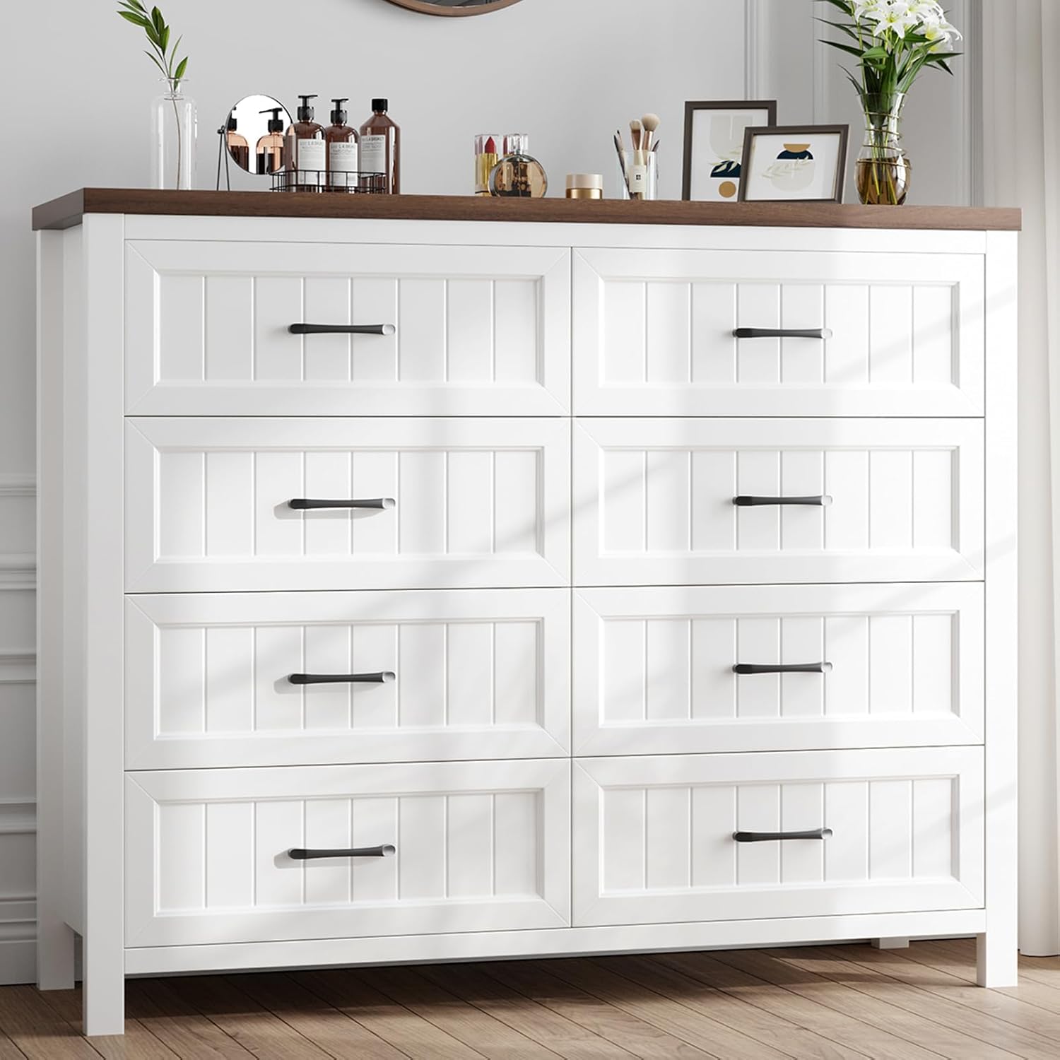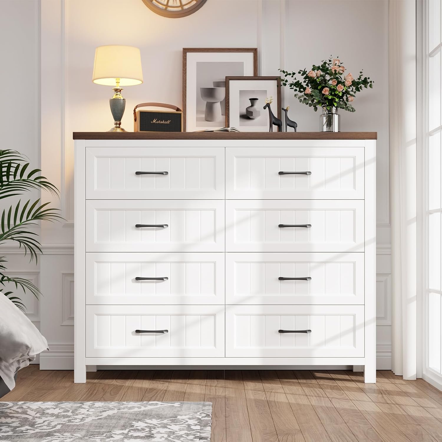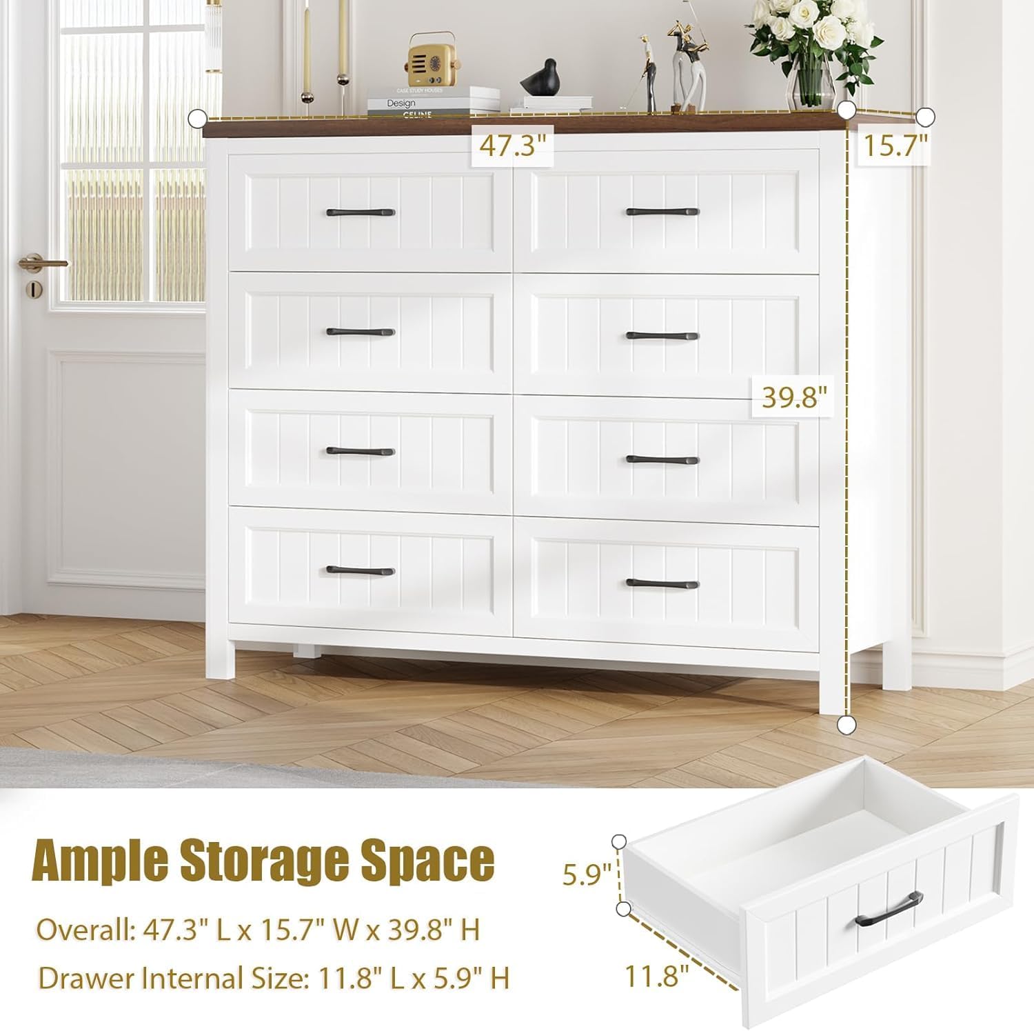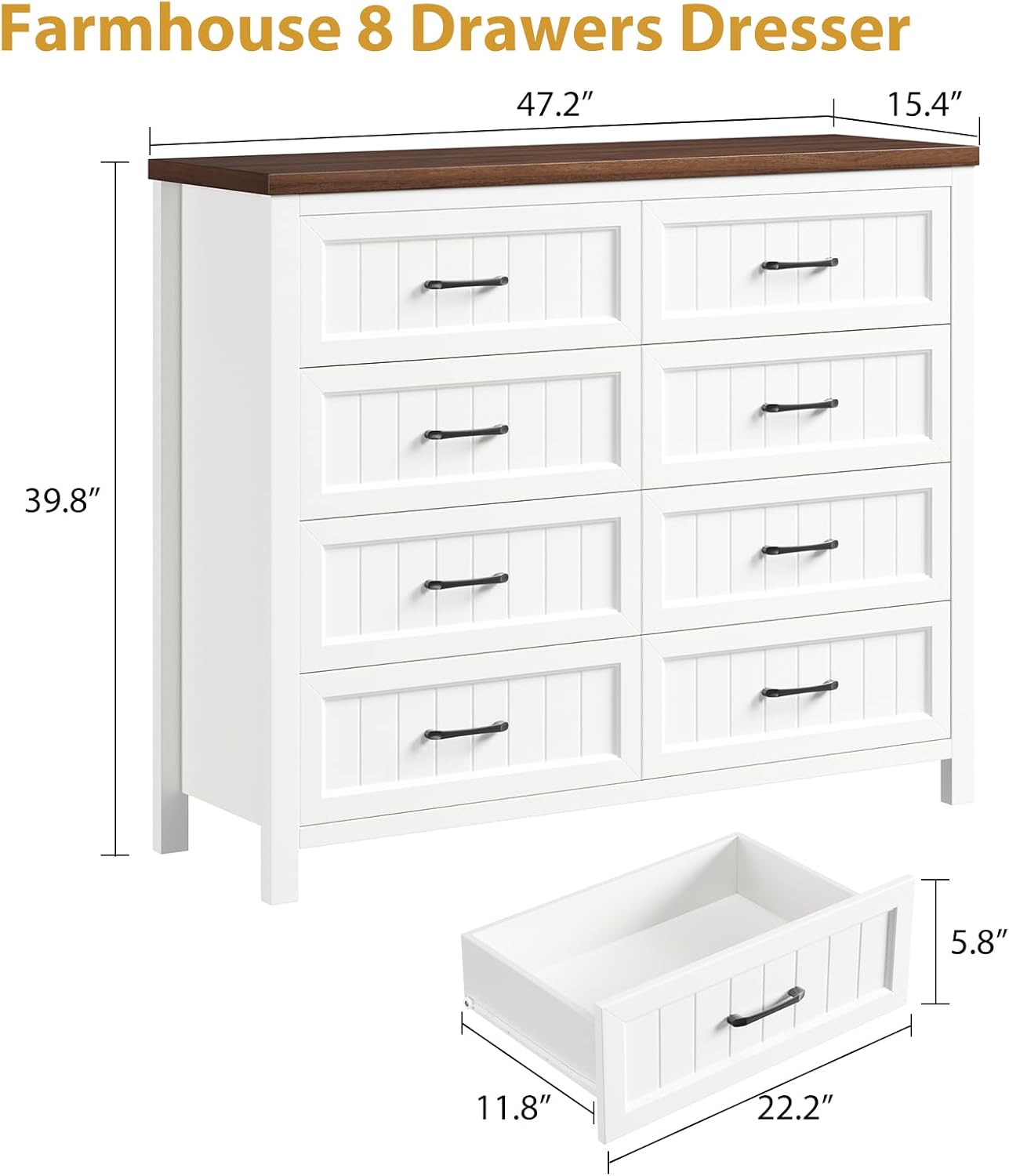 Massive Storage Capacity (47.3″ L x 39.8″ H x 15.7″ W): Experience ample organization with eight deep, smooth-gliding drawers. Effortlessly store clothing, linens, accessories, and more for the whole family. Keep everything sorted and within reach. The spacious top surface is ideal for displaying décor, photos, or a lamp, helping you maintain a tidy space. Hello, clutter-free life!