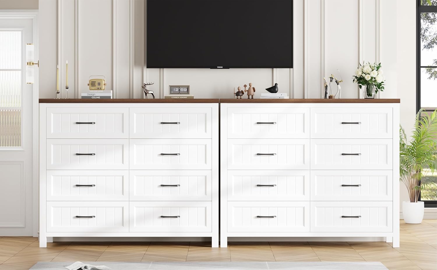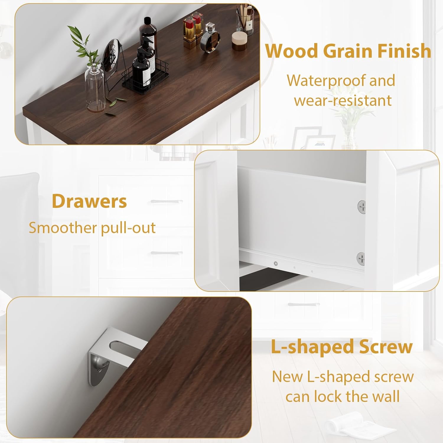 Built to Last with Premium Materials: Crafted from durable MDF wood and robust metal slides, this dresser promises longevity. The thickened top resists scratches, repels water, and wipes clean easily. Reinforced construction ensures exceptional stability and strong load capacity. Deep drawers glide smoothly and silently on quality metal rails, plus includes an anti-tip kit for added safety.