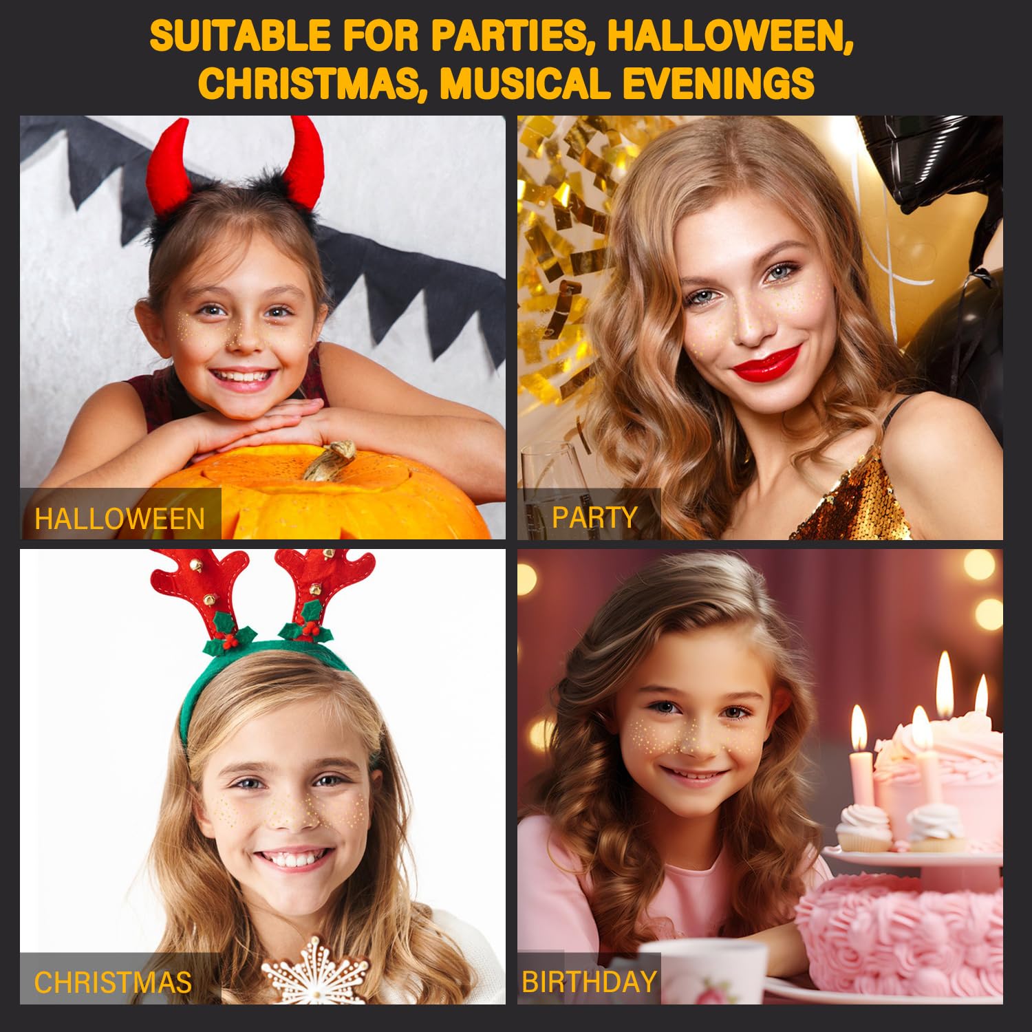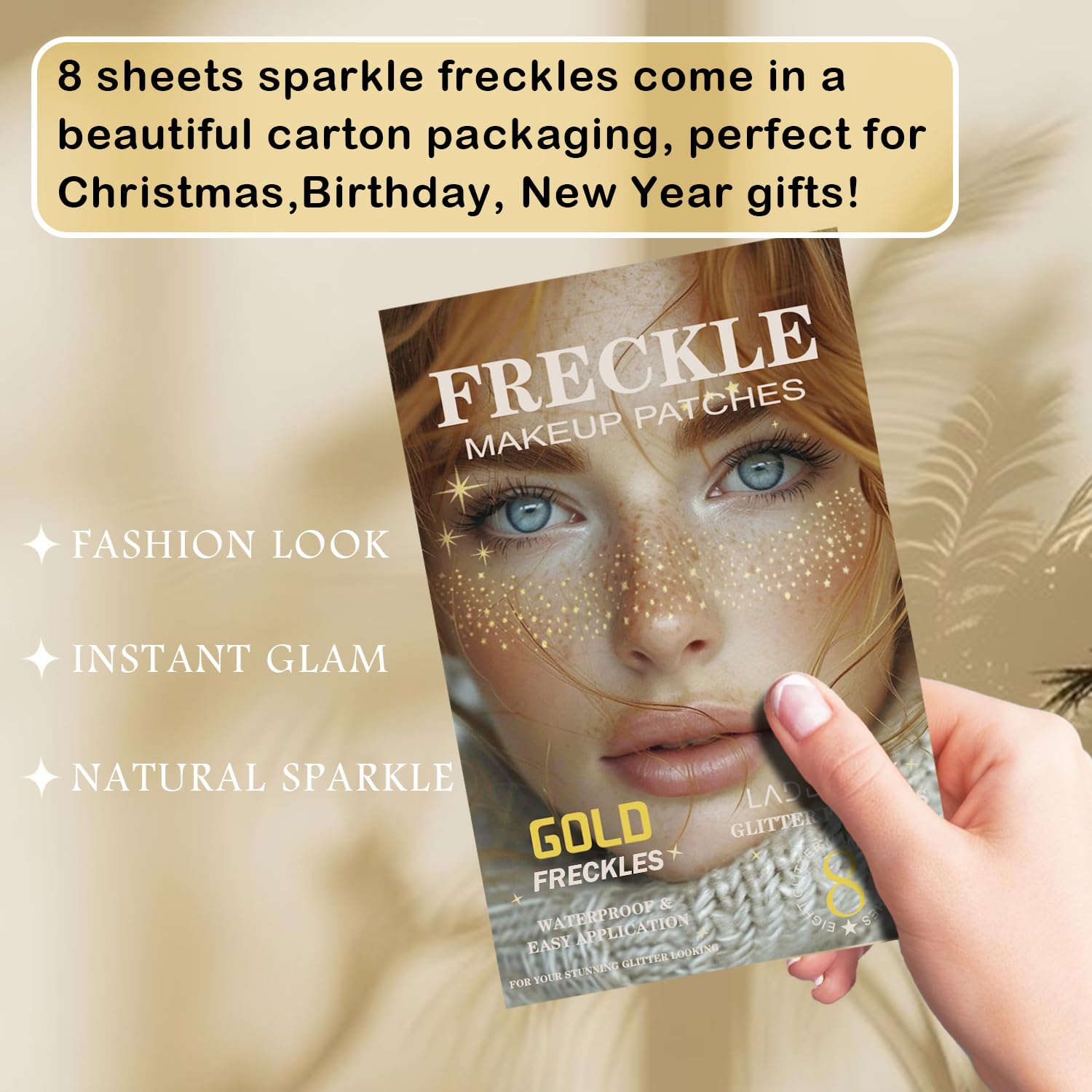 Sparkle Gold Glitter Freckles: These 8 gold glitter patches allow you to create a stunning, glittery look on your face for special occasions or festivals. Perfect for wearing in Halloween, Christmas, birthday parties, concerts, dances and shows!