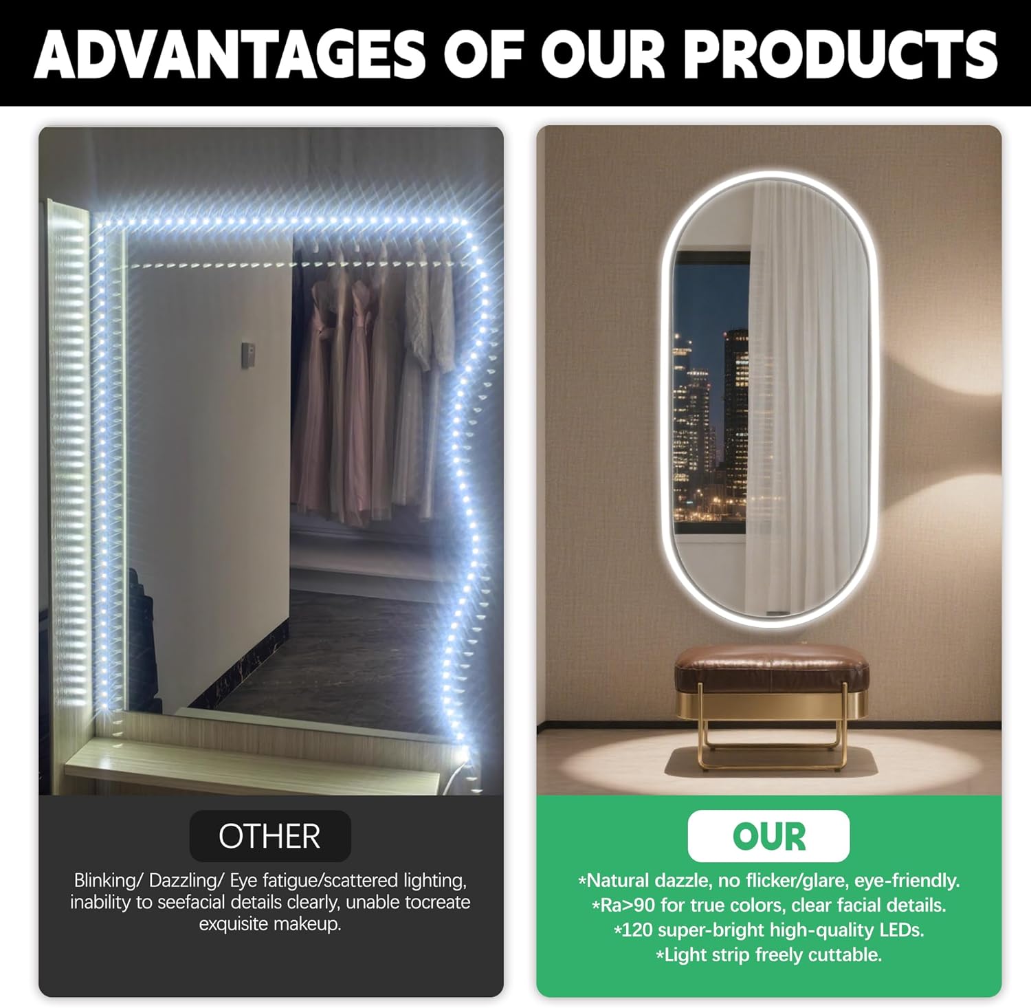 【DIY Your Own Vanity Mirror】Always wanted a stylish vanity mirror but found them overpriced? Pair our LED mirror strip lights with your own mirror to create a bright, glamorous vanity setup at a fraction of the cost. (Mirror not included)