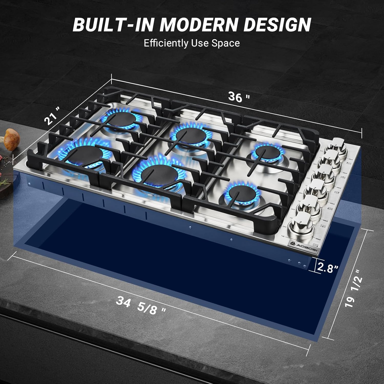 【High Efficiency Cooktop】AAOBOSl gas cooktop 36 inch offers 6 Italian crafted burners with 3 different BTU outputs: 18,000 BTU, 12,000 BTU and 6,000 BTU, a great boon for those responsible for catering for large family gatherings or for those who are eager to multi-multi for more than just a limited amount of time to dine. With multiple burners on a single gas hob, users can handle a range of dishes at the same time.