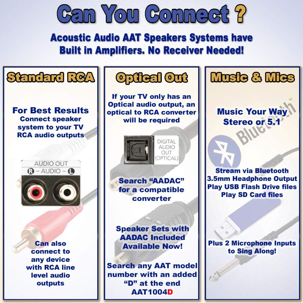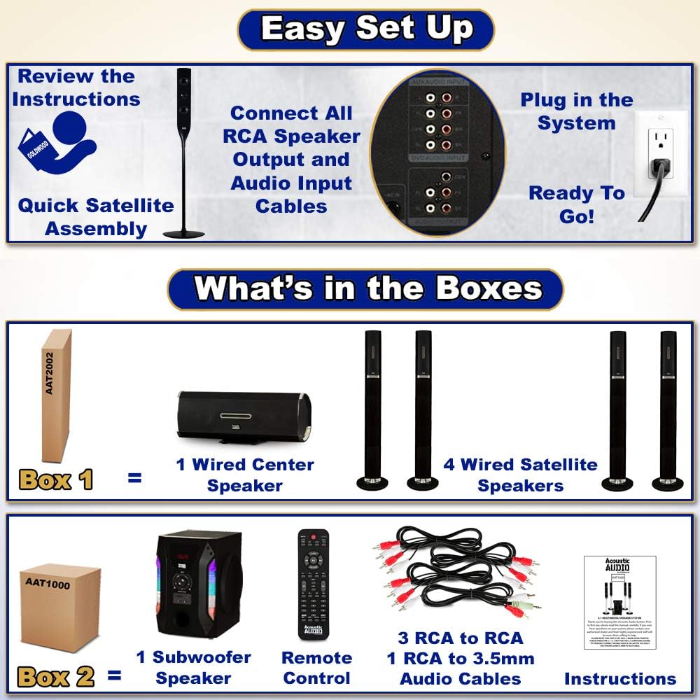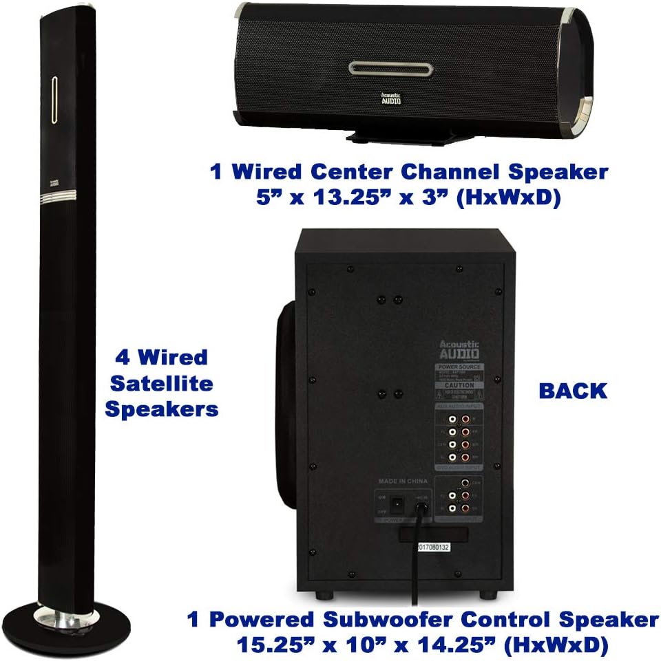 Acoustic Audio AAT1002 Bluetooth Tower 5.1 Home Theater Speaker System with 8″ Powered Subwoofer