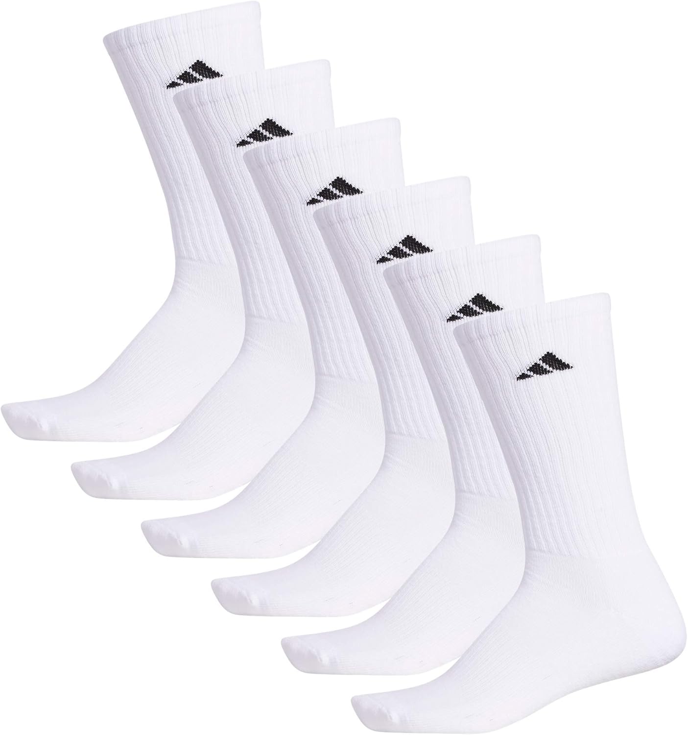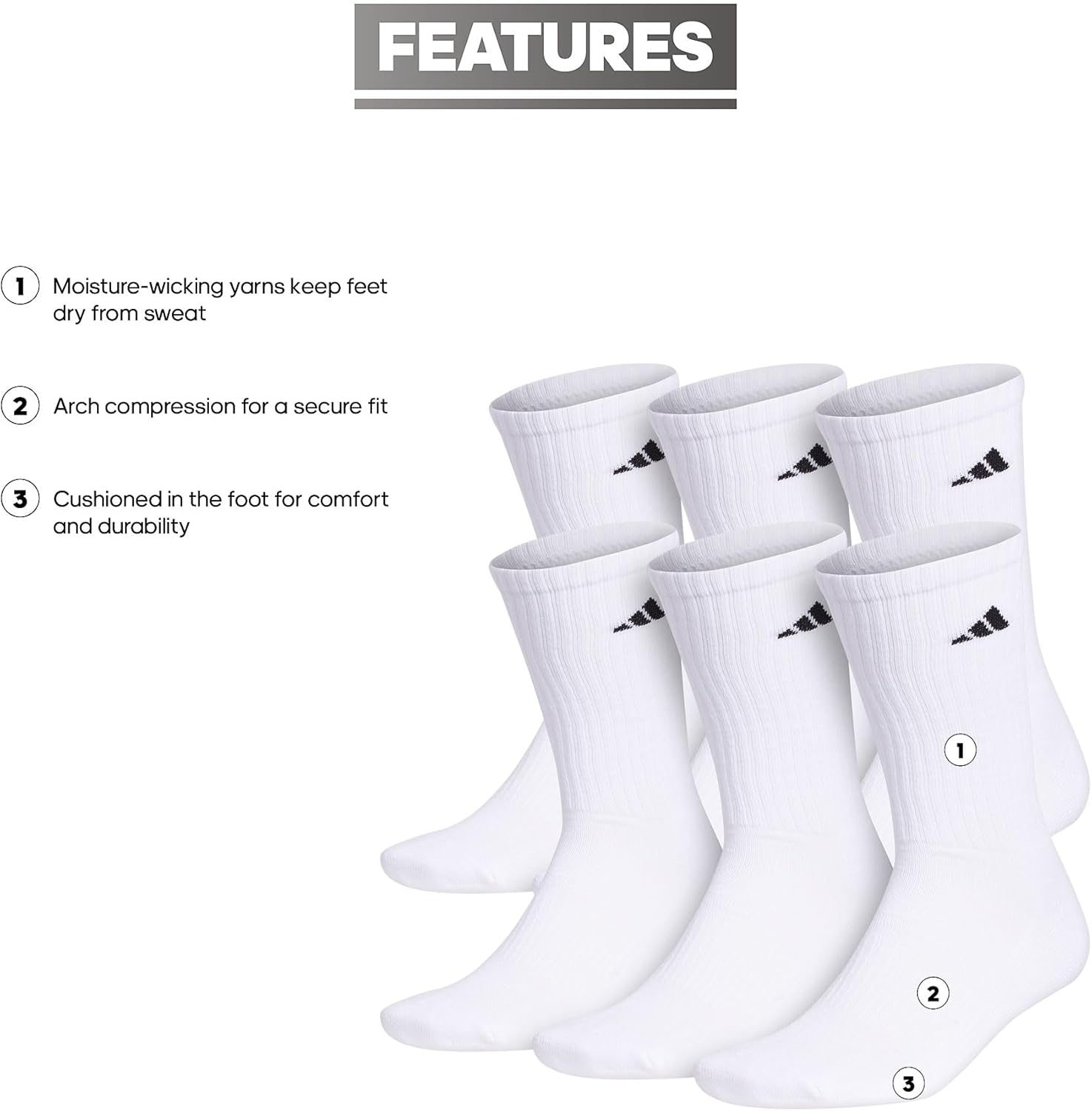 adidas Men’s Athletic Cushioned 6-Pack Crew, Cushioned Crew Socks with Arch Compression for a Secure Fit