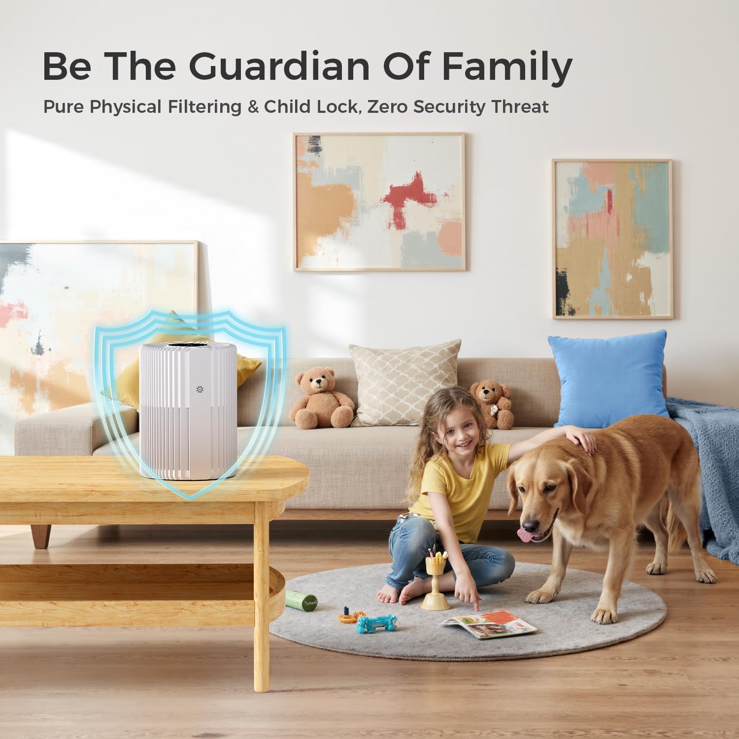 Air Purifiers For Bedroom And Home 1095 Sq. Ft True H13 HEPA Pet Air Purifier For Dorm Room With Air Quality Display 360° Air Intake & Outlet For Bedroom Office, DH-JHD07(White)