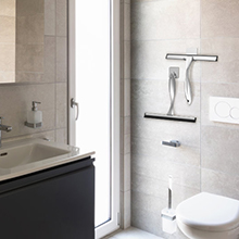 All-Purpose Stainless Steel Shower Squeegee for Shower Glass Door with 2 Adhesive Hooks, Bathroom Cleaner Tool Household Window Mirror Squeegee , Cleaning Tile Wall, Car, 10 Inch Silver