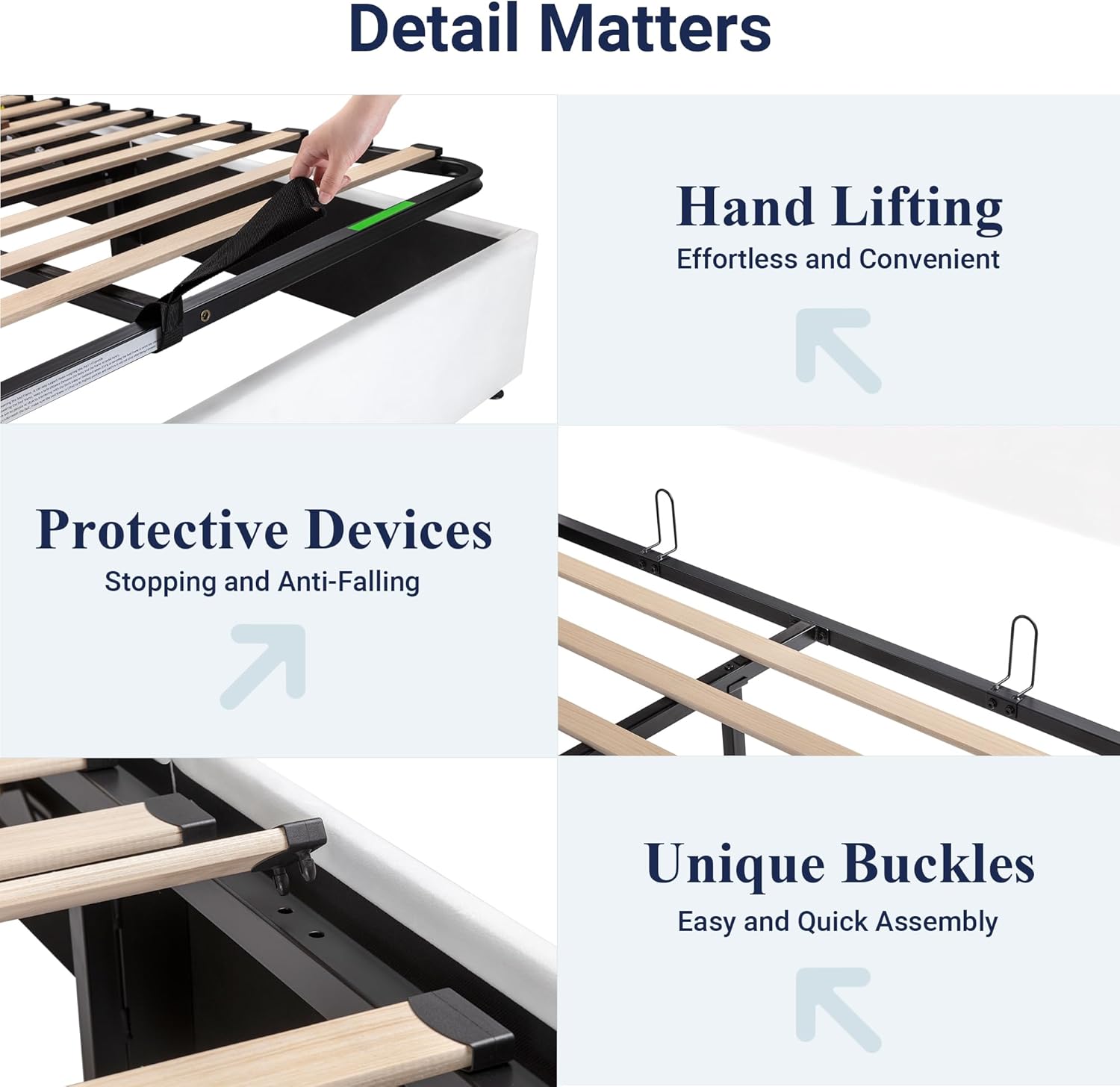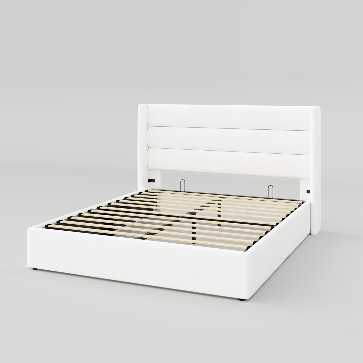 Allewie Queen Size Velvet Lift Up Storage Bed, Modern Wingback Headboard, Hydraulic Support, No Box Spring Needed, White