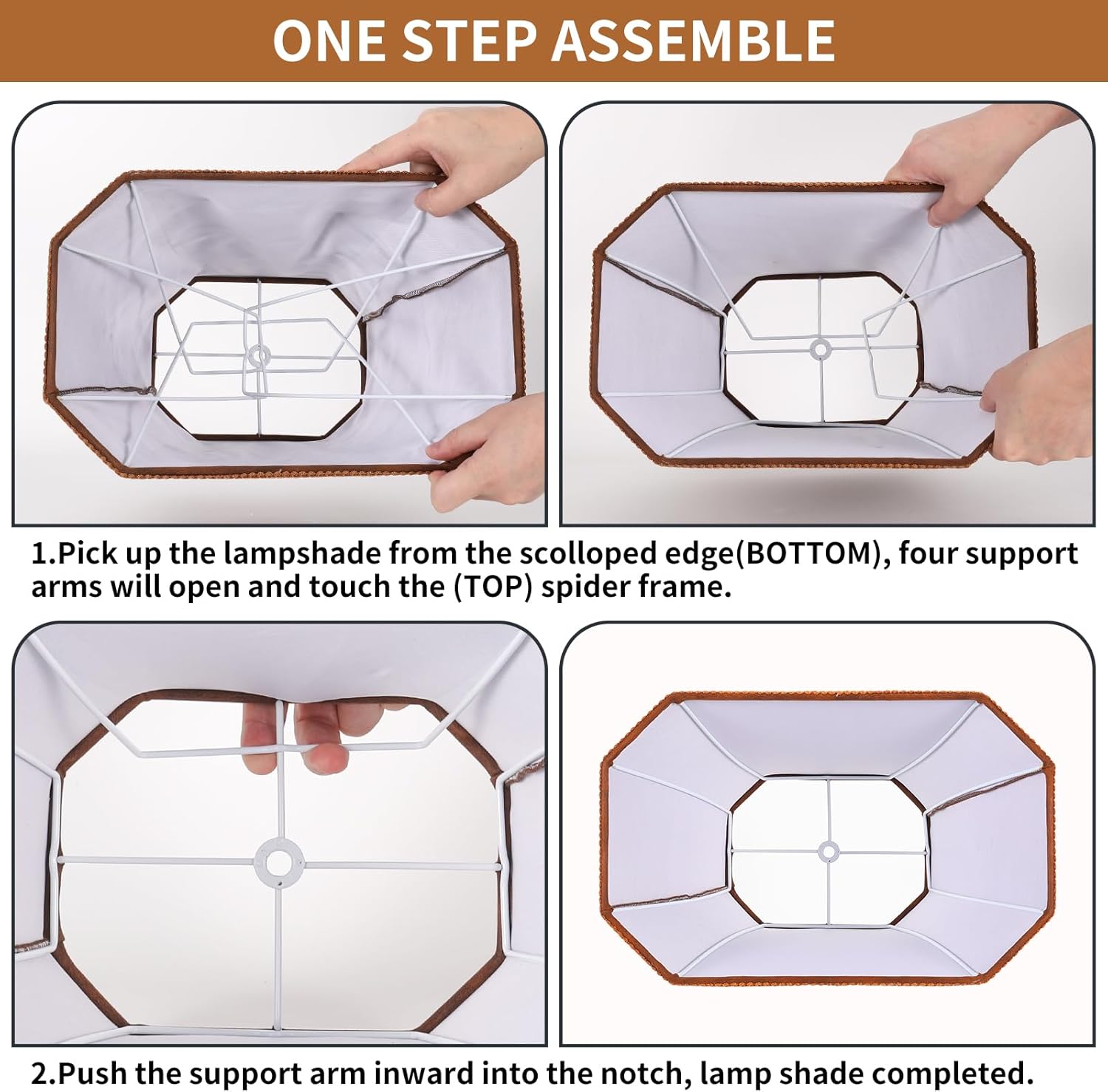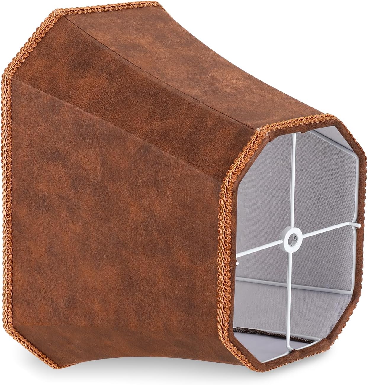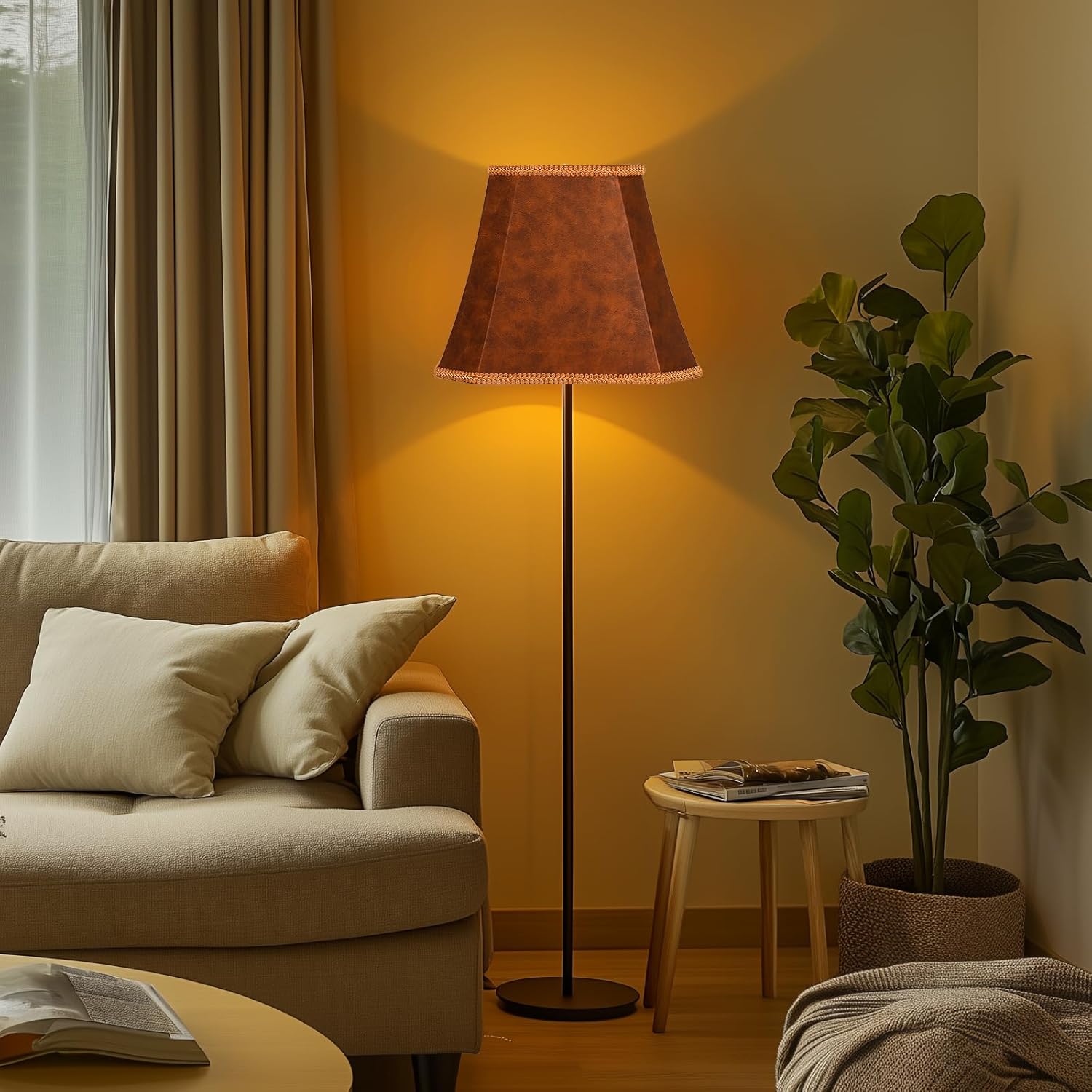Classic Design: Upgrade your lighting with this elegant bell fabric lampshade, perfect for table lamps & floor lamp replacement. Its cut-corner design and rich brown color add a soft touch to any home decor. Easy assembly with spider fitter included.