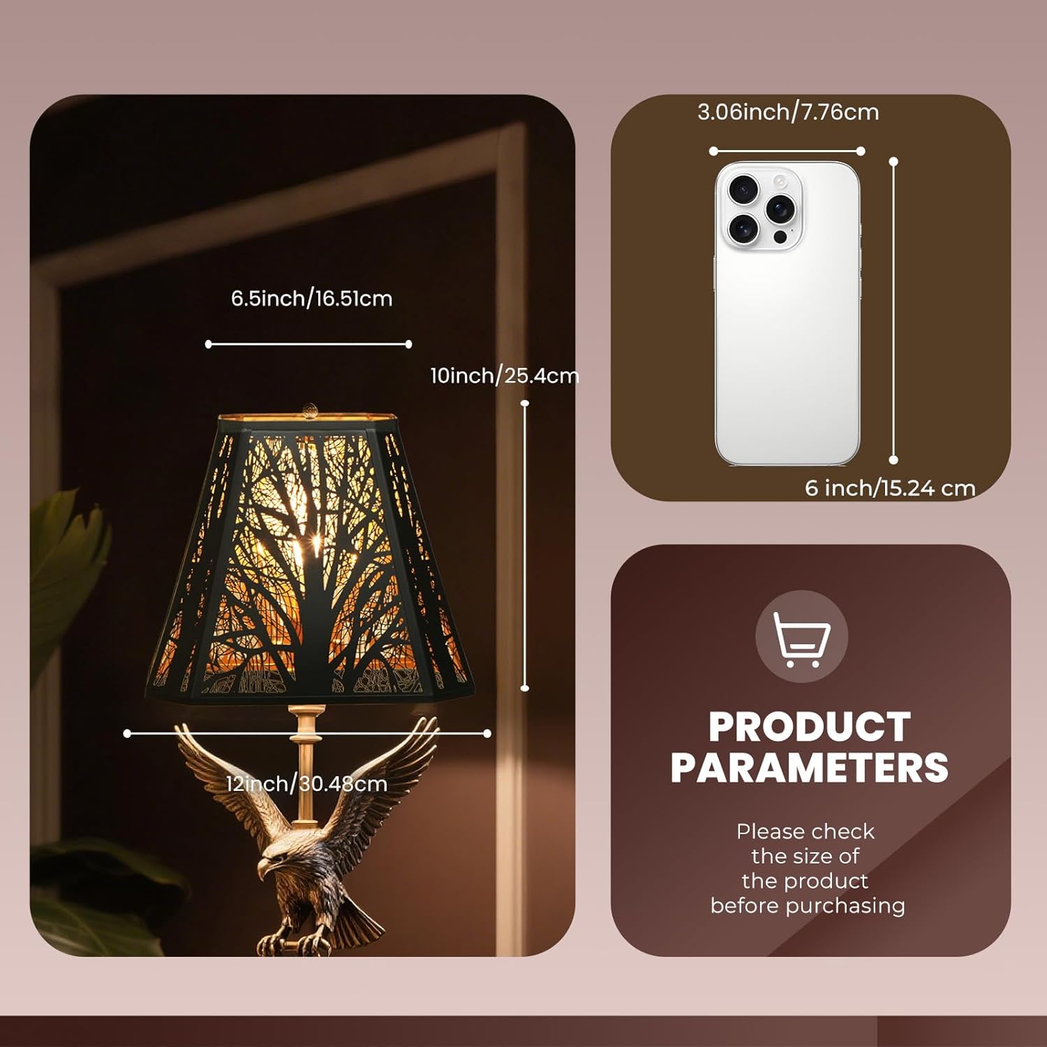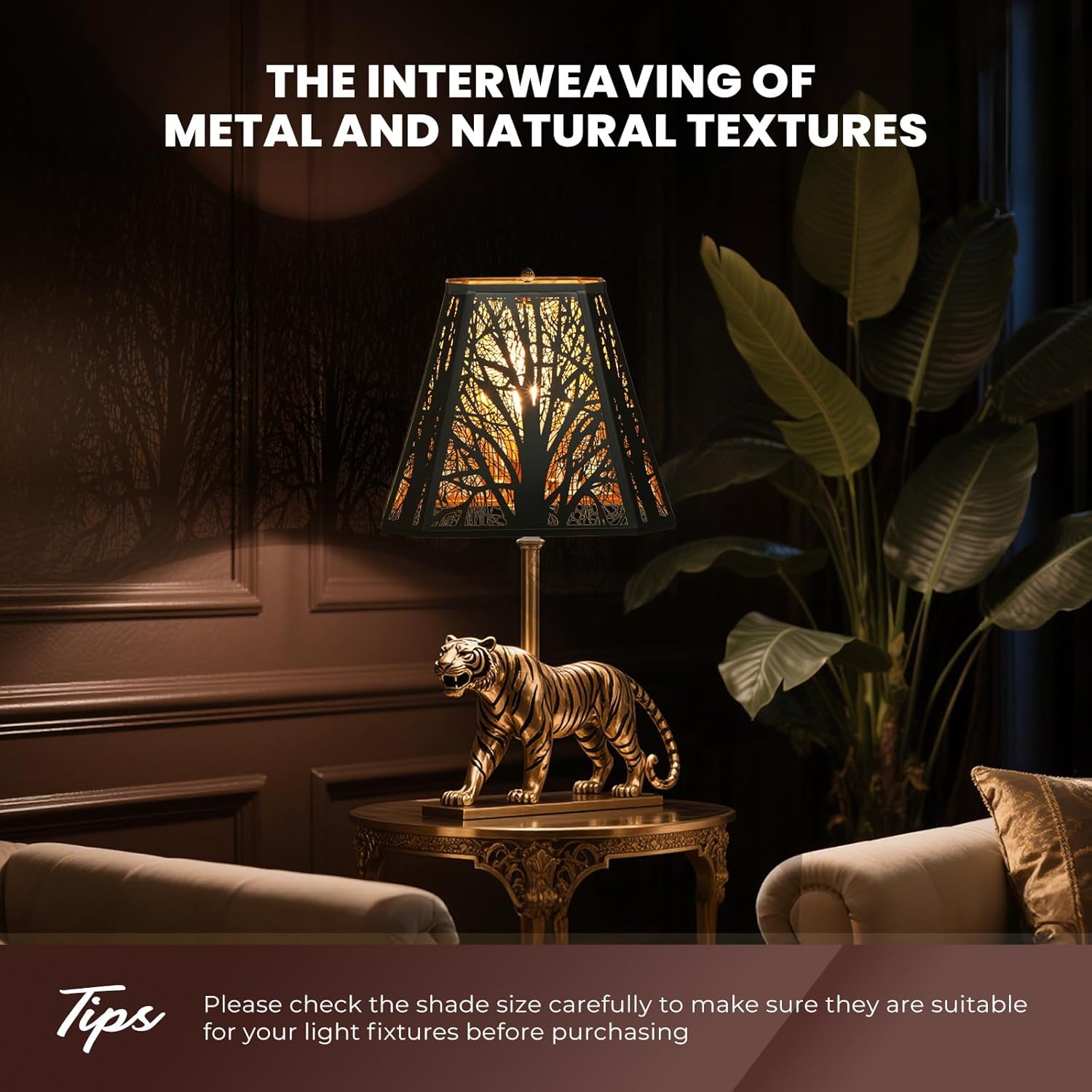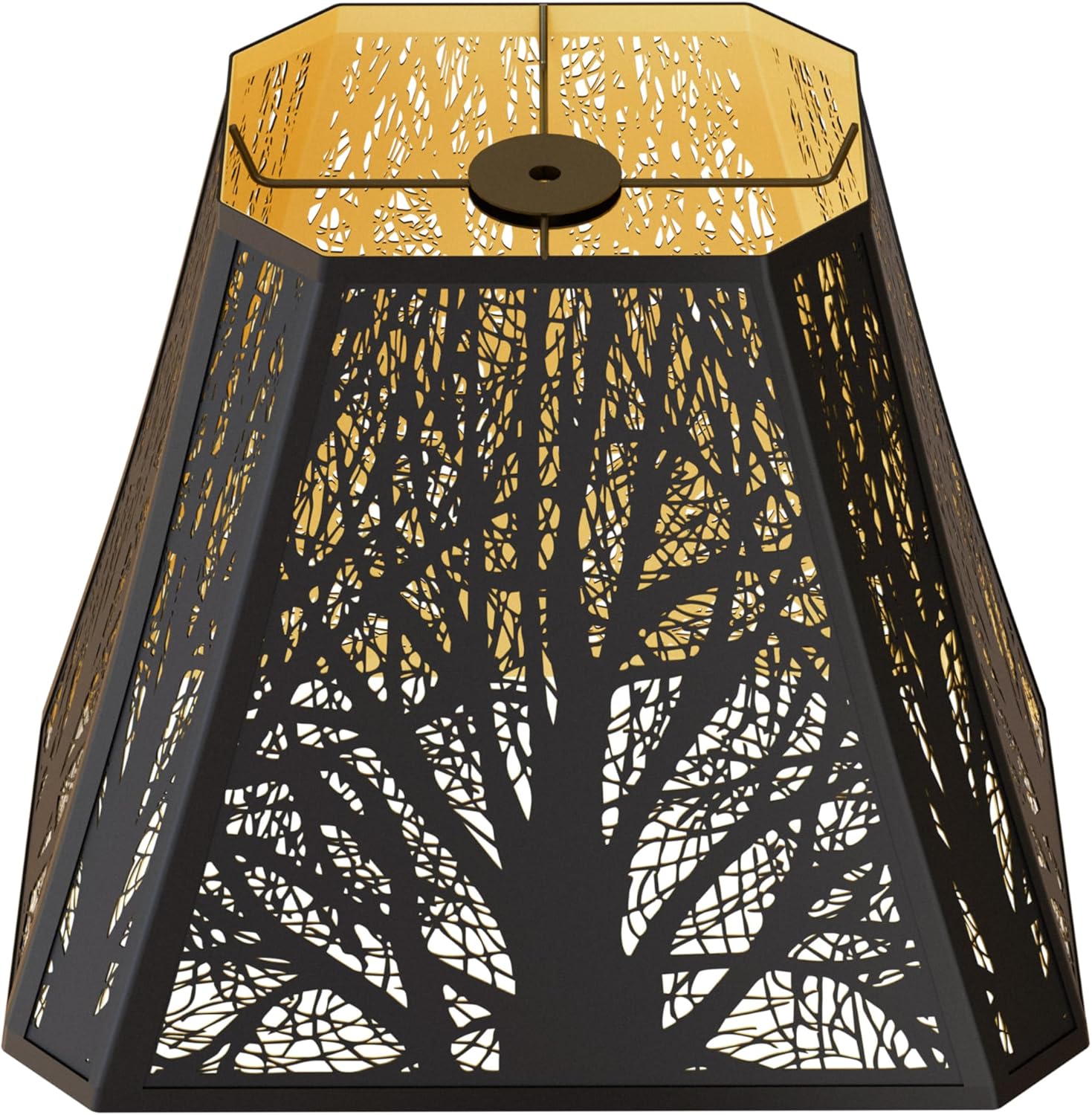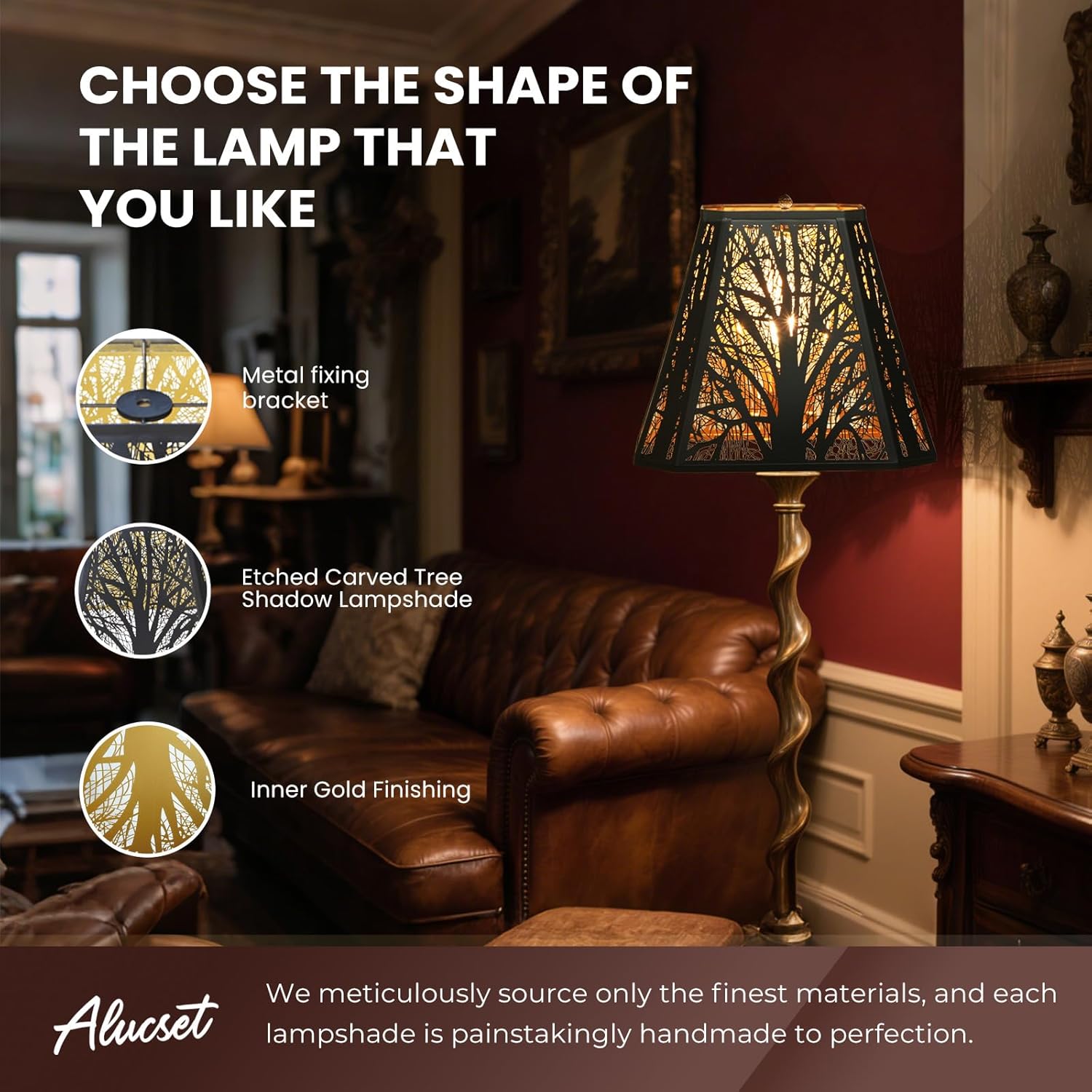 ALUCSET Metal Bell Lampshade, Rectangular Cut Corner Lamp Shades Replacement for Table Floor Lamps, Etched Forest Lamp Shade (5+6.5) ” Top x (8+12)” Bottom x 10″ High, Black Gold Replacement Spider