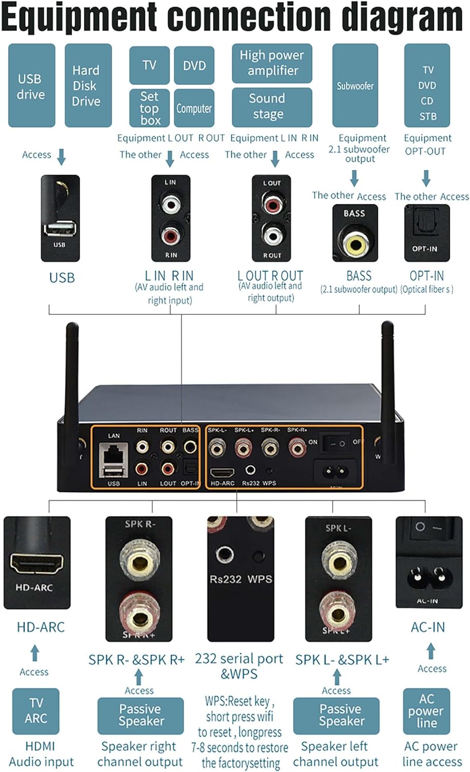 Lossless Wireless Streaming via Bluetooth 5.0 & WiFi – Featuring advanced Linkplay-A31 module, this Bluetooth amplifier supports aptX HD, AirPlay, and DLNA for high-speed transmission up to 24-bit/192kHz. Stream wirelessly without compromising quality—ideal for Spotify, Tidal, and more.