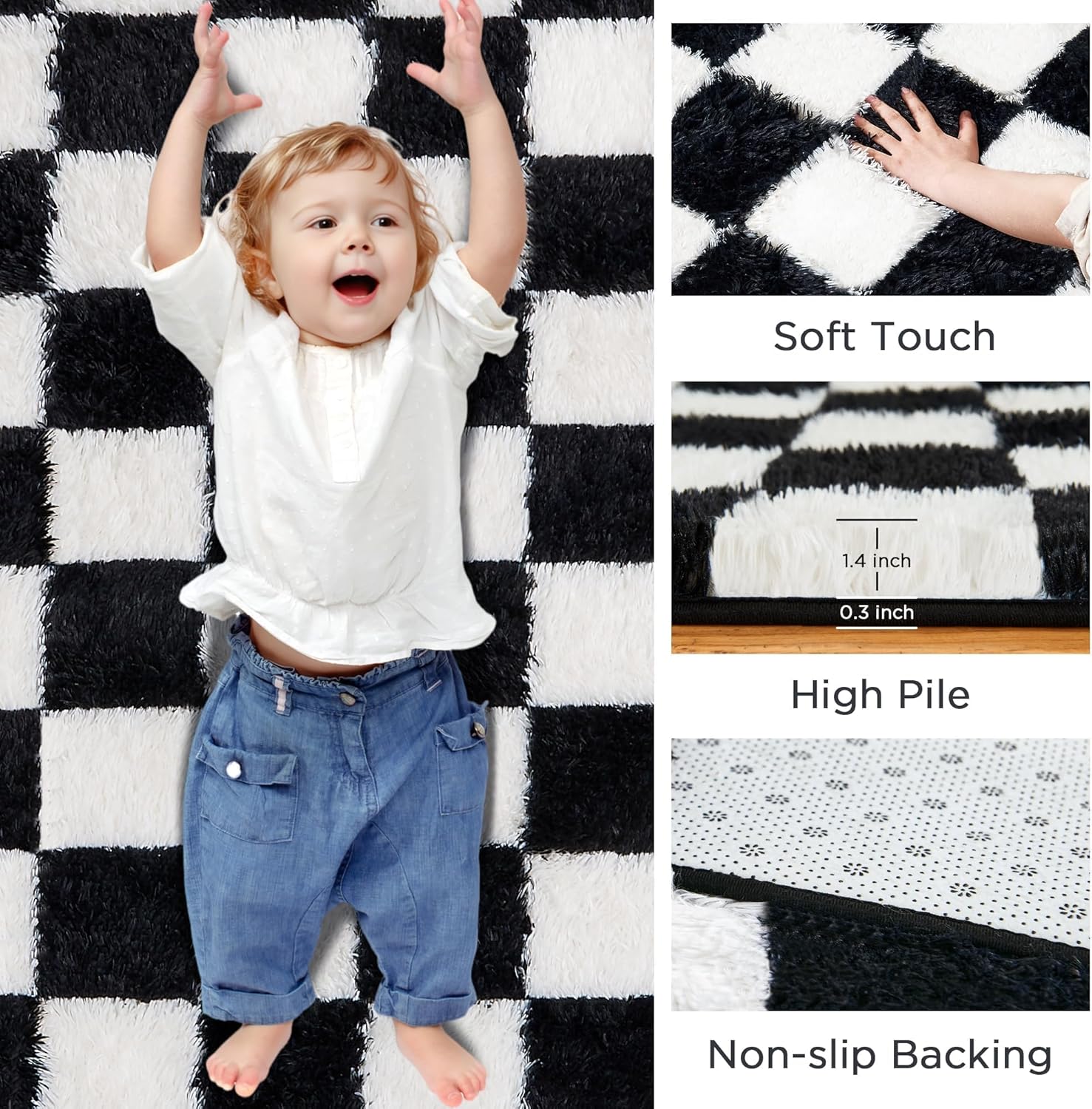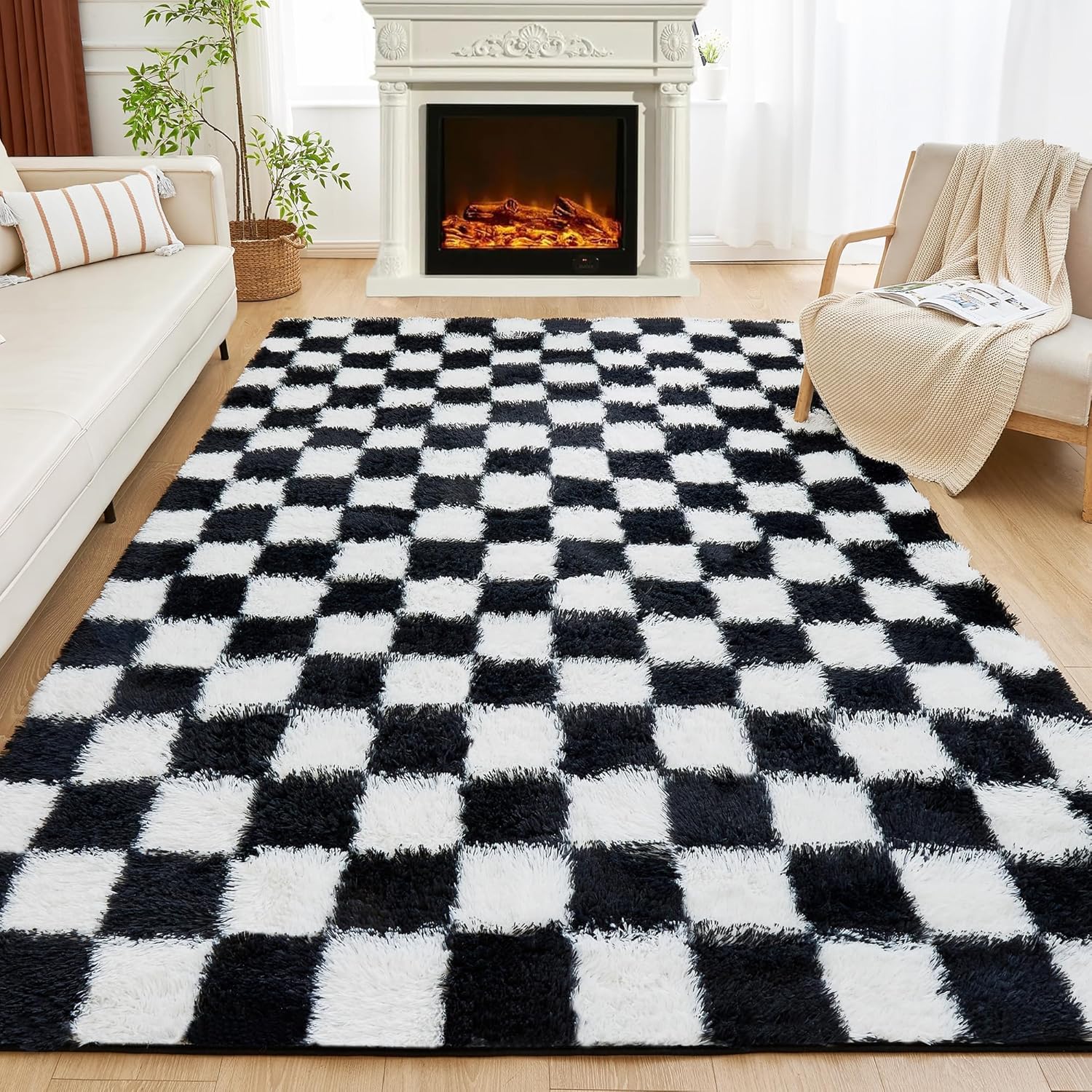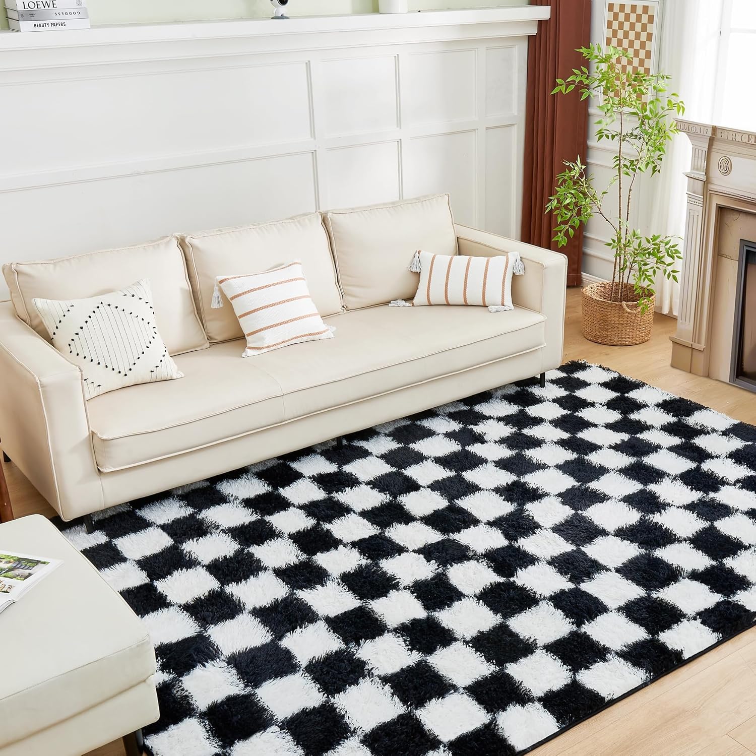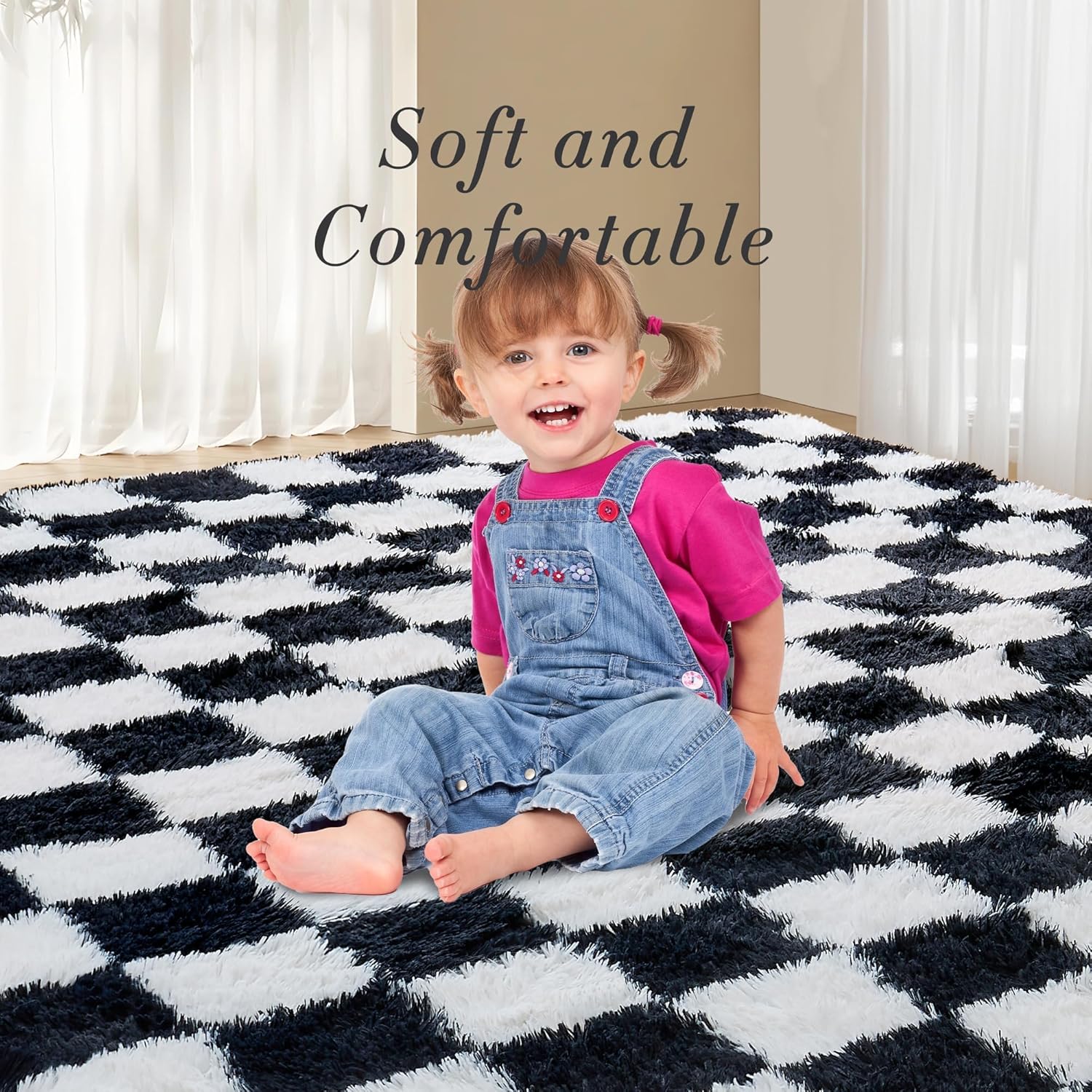 Classic Checkered Design: The soft checkered rug design is inspired from the checkerboard pattern. Its timeless elegance allows it to be paired with any décor, enhancing the visual appeal and order of the space