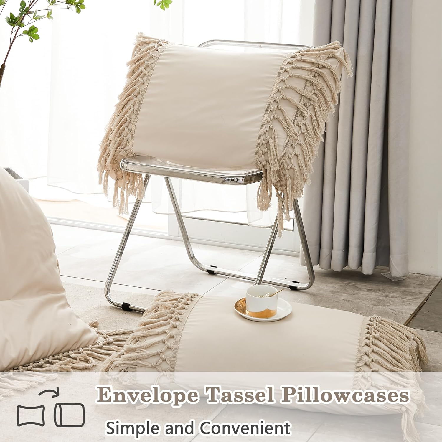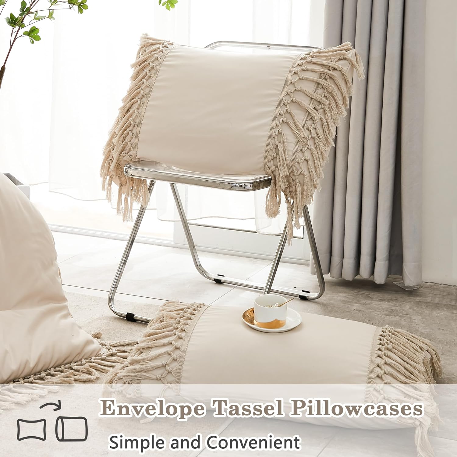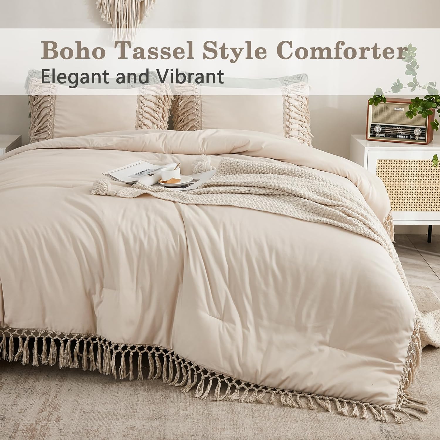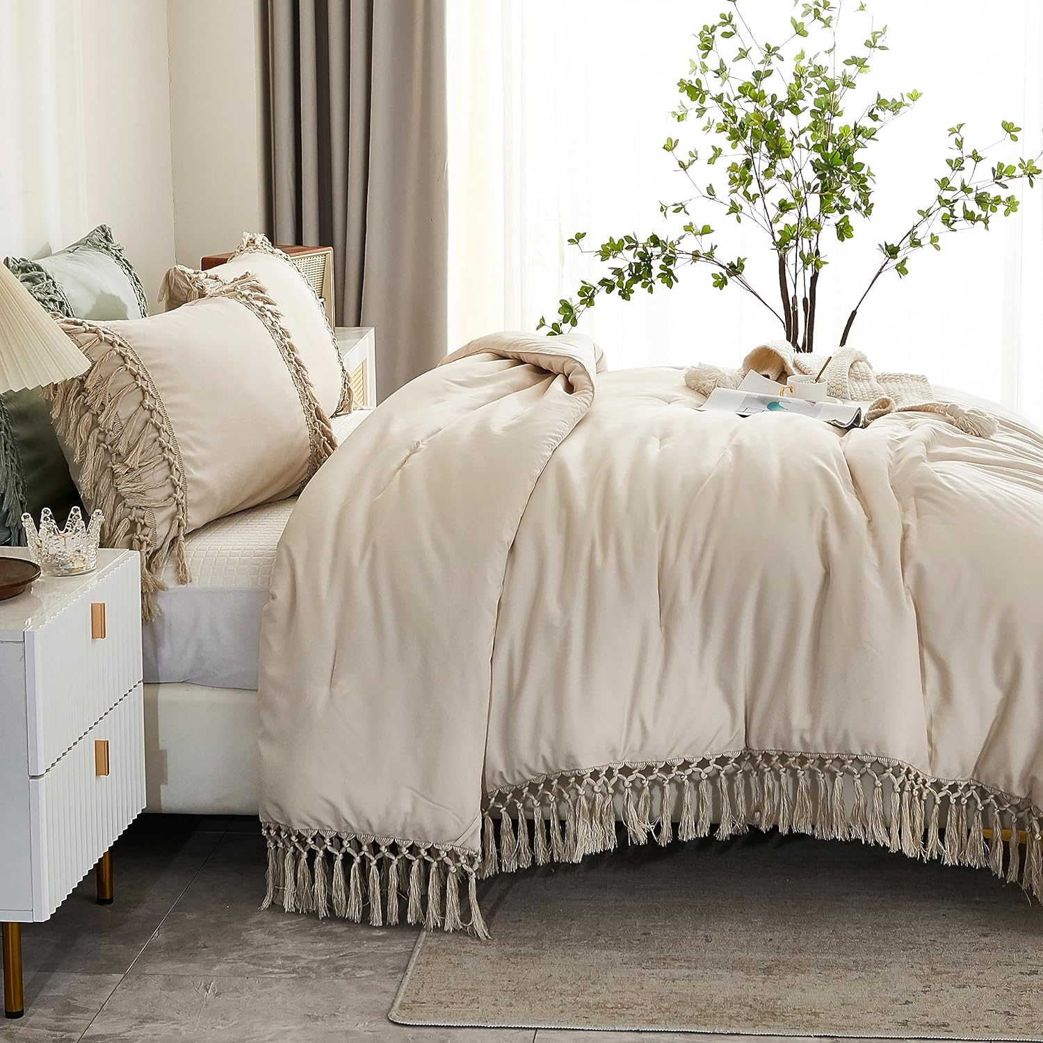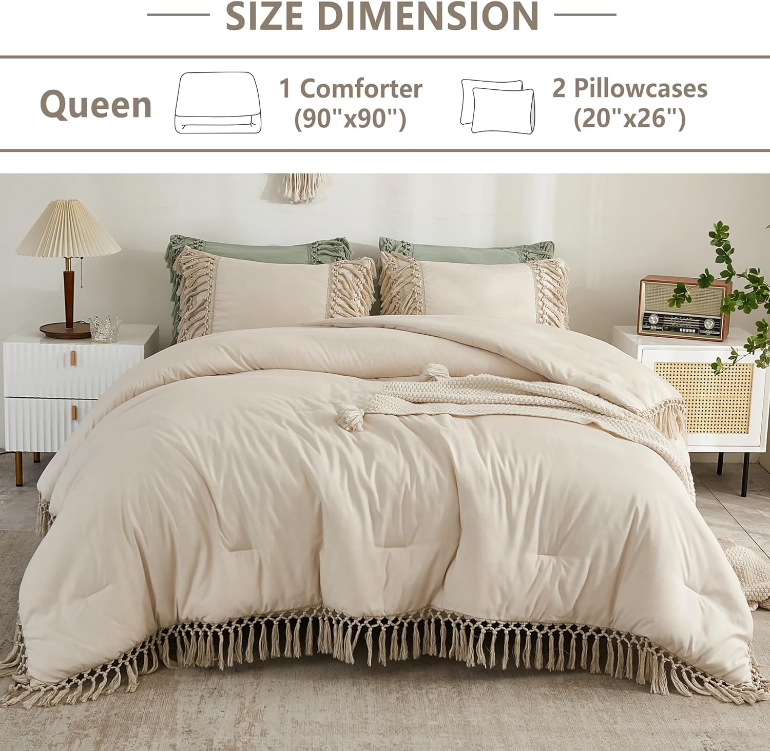 Andency Comforter Queen Size Set Beige, 3 Pieces Tassel Boho Lightweight Winter Bedding Comforters & Sets, All Season Bed Set (90x90In Comforter & 2 Pillowcases)