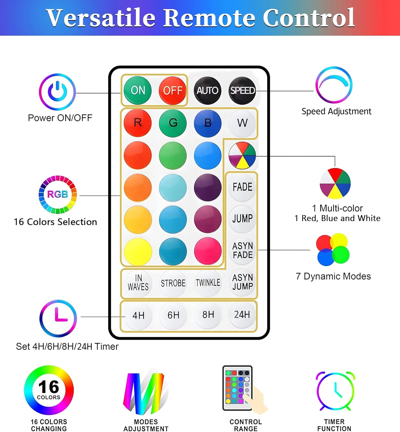 MEMORY & TIMER FUNCTIONS: Our rope lights are equipped with a multifunctional remote that allows for your customization. With the timer function, you can set the lights to automatically turn off after 4, 6, 8, or 24 hours. The remote also allows you to adjust the speed of the 7 lighting modes with the “speed” button. Additionally, the memory function ensures that the lights will remember your last setting even after being turned off by the remote, eliminating the need to reset them every time.