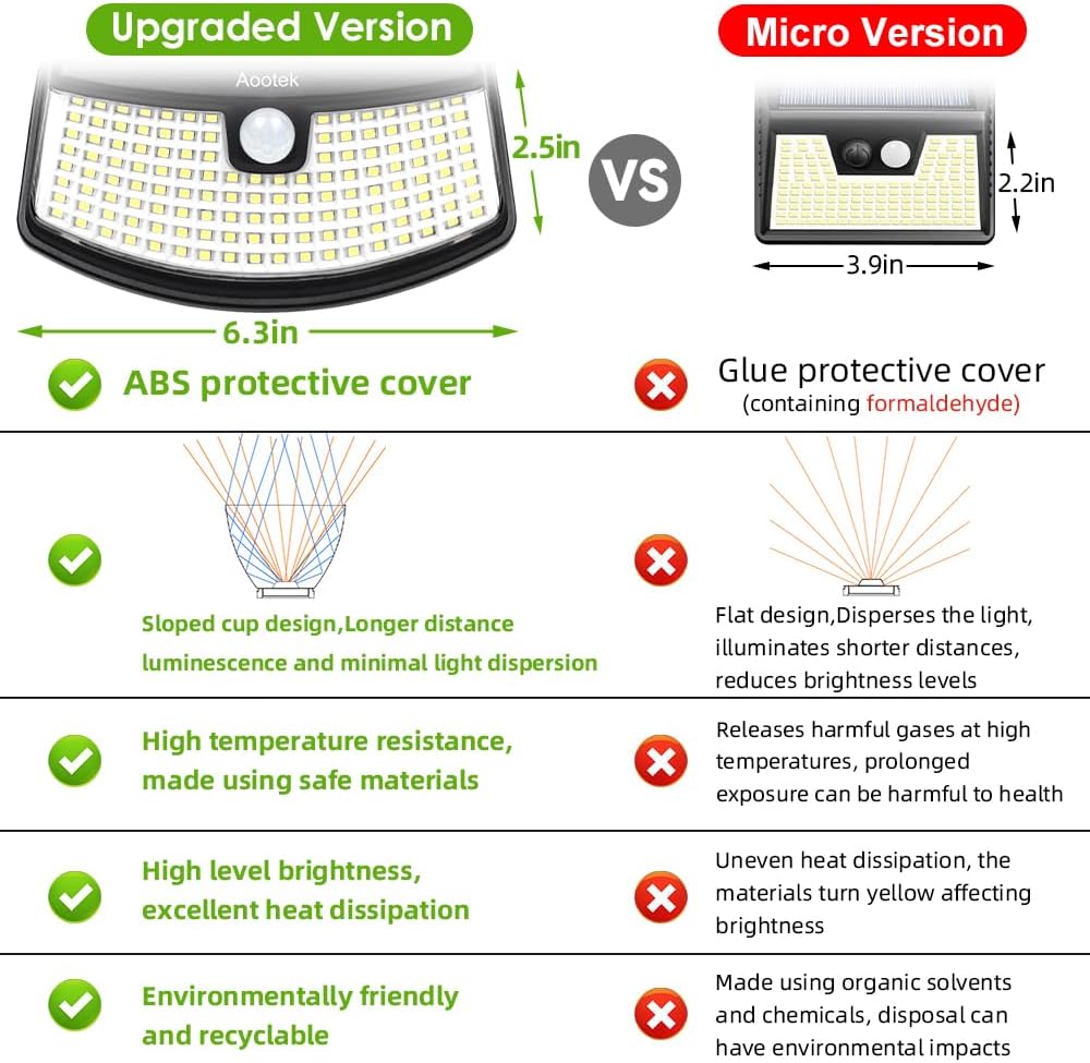 Aootek New Solar Motion Sensor Lights 120 LEDs with Lights Reflector,270° Wide Angle, IP65 Waterproof, Step Lights for Front Door, Yard, Garage, Deck (Back Button 4-Pack)