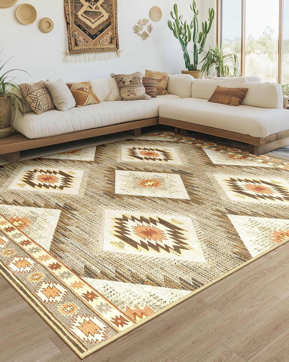 Tribal Series and Western Style: The Rug patterns feature printed designs that blend tribal and western elements, adding a touch of vintage artistry to your home. The carpets are available in a variety of colors and sizes to suit different living spaces. They are ideal for entryways, foyers, hallways, kitchens, living rooms, dining rooms, and other high-traffic indoor areas. The carpet surface is Water Repellent, and stain-resistant, making it easy to clean.