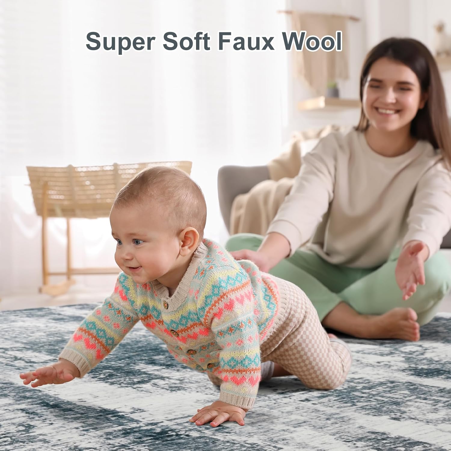 Soft Area Rug: Our abstract area rug is made with soft faux wool fibers comfortable on barefoot and easy to maintenance. The edges are reinforced