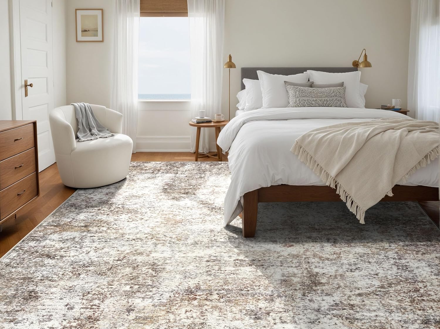 MODERN NEUTRAL AREA RUG: Inspired by the river mixed with earth tones, this LOVORAL modern rug, makes you experience taking a walk along the river without leaving your home. Features a subtle, abstract design in warm tones of brown and purple. Bring invigorate the style of any room in your home
