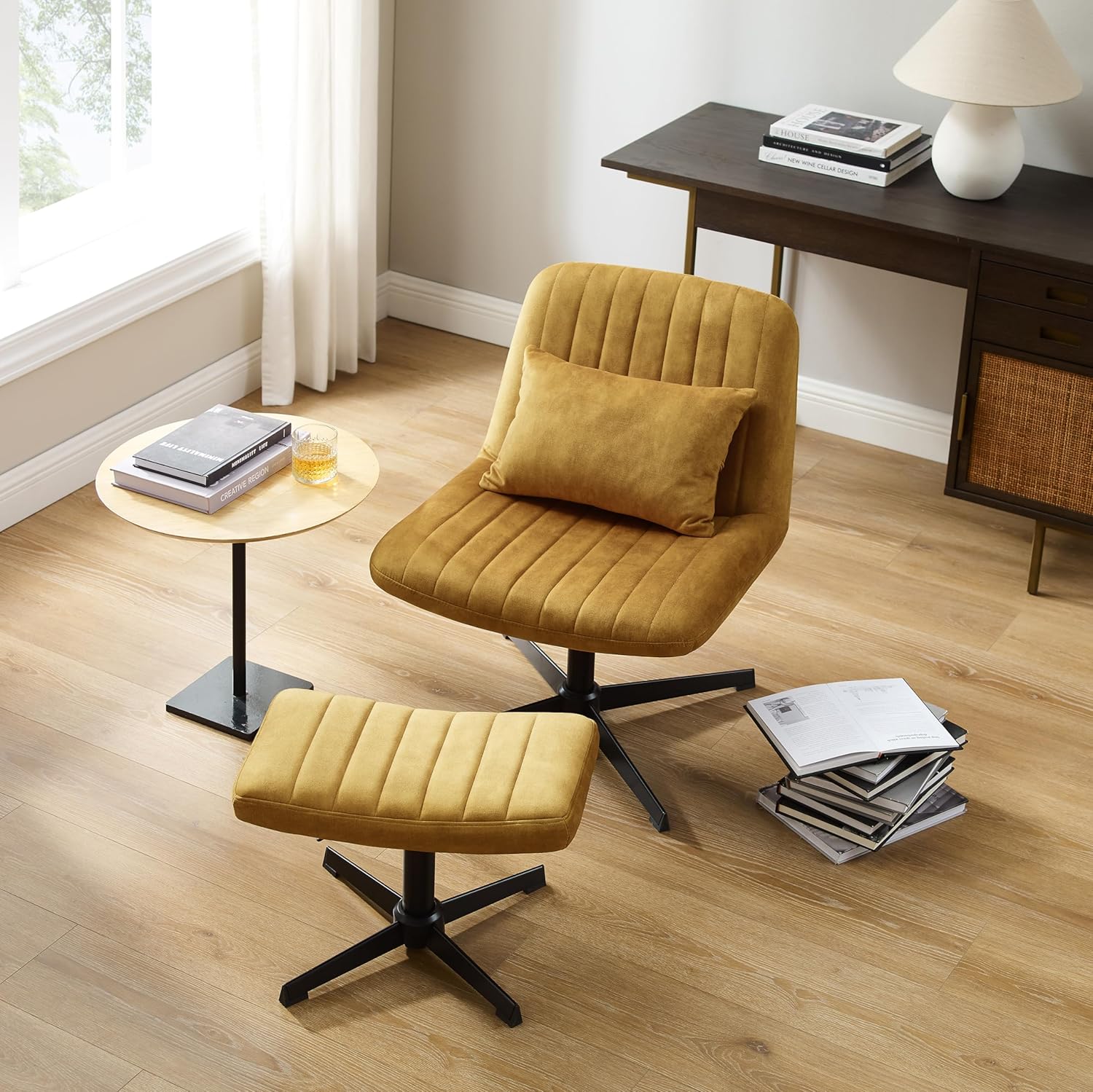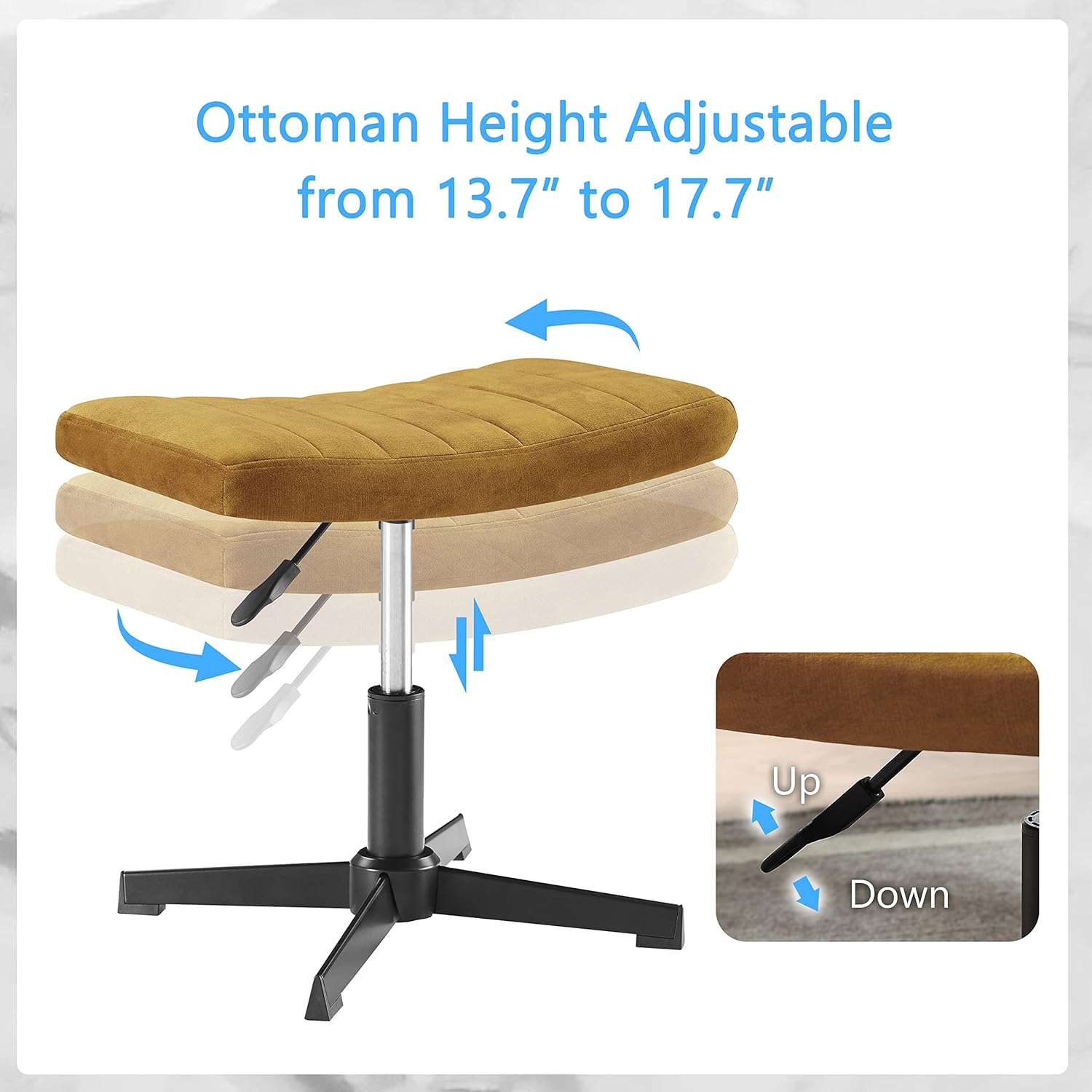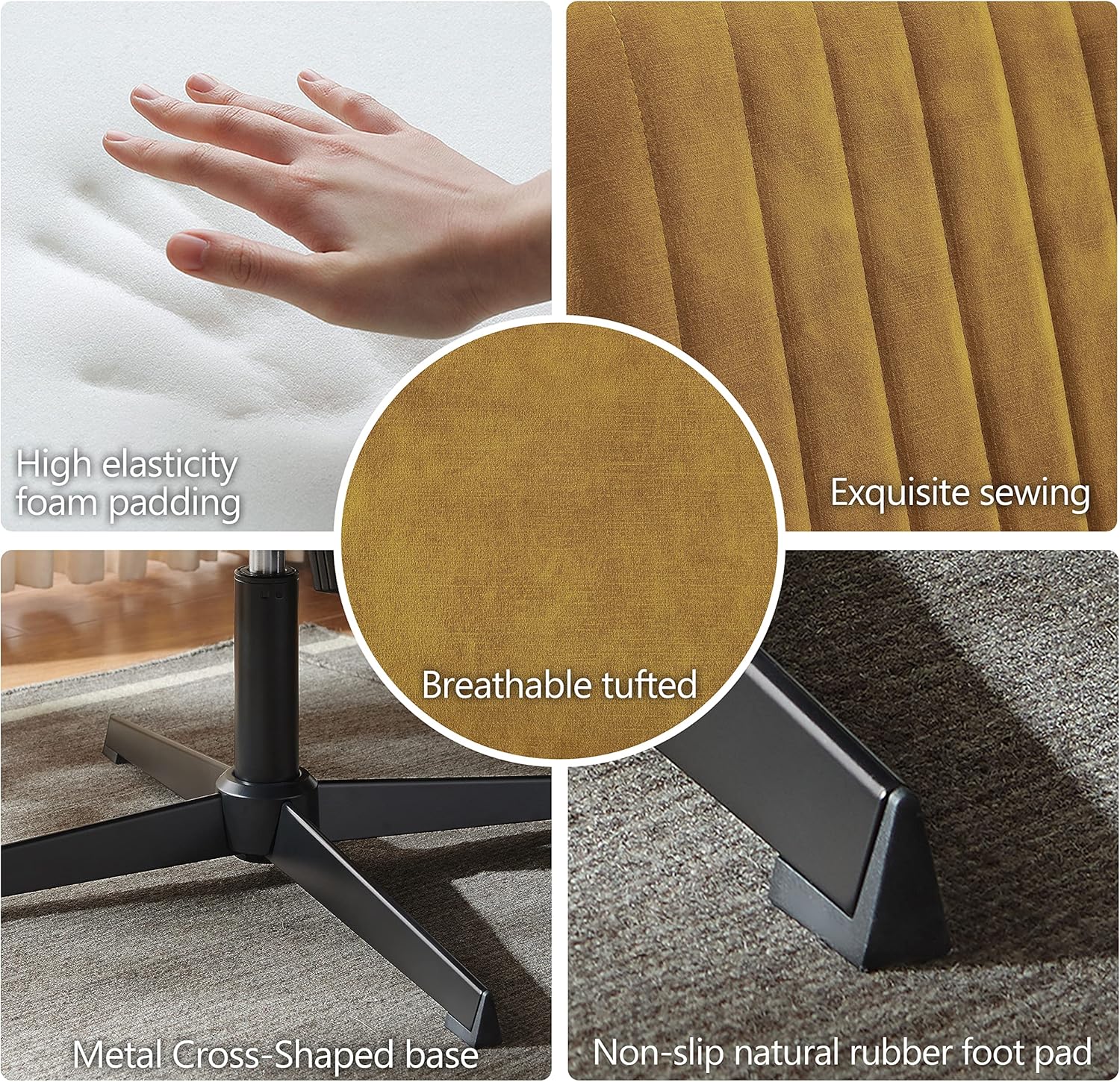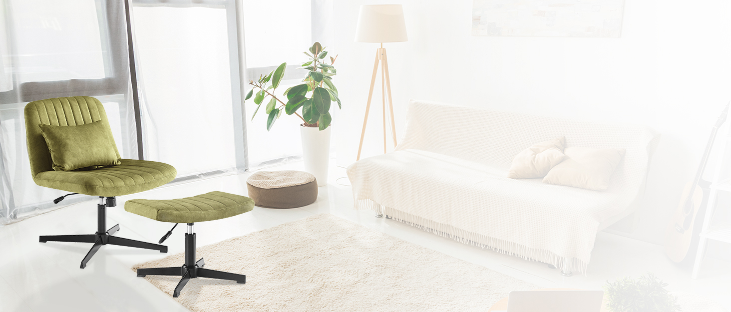 【Multi-purpose Chair】:The footrest chair is height-adjustable and swivels 360 degrees. Which can be used as a vanity chair, dressing chair, accent chair, side chair, etc.